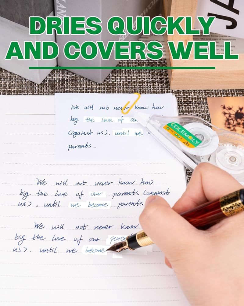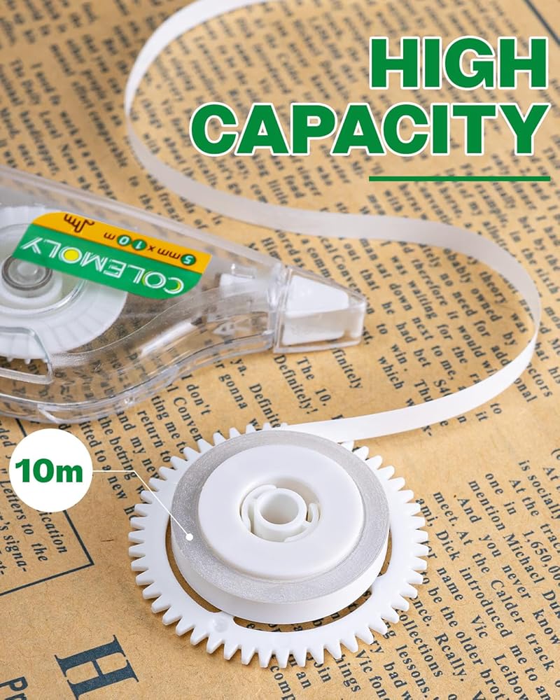 Accurate Correction: Compared to traditional liquid correction, correction tape provides excellent control, each dispenser includes white correction tape that measures 1/5-inch by 32.8 feet,allowing you to easily slide the correction tape to cover wrong writing