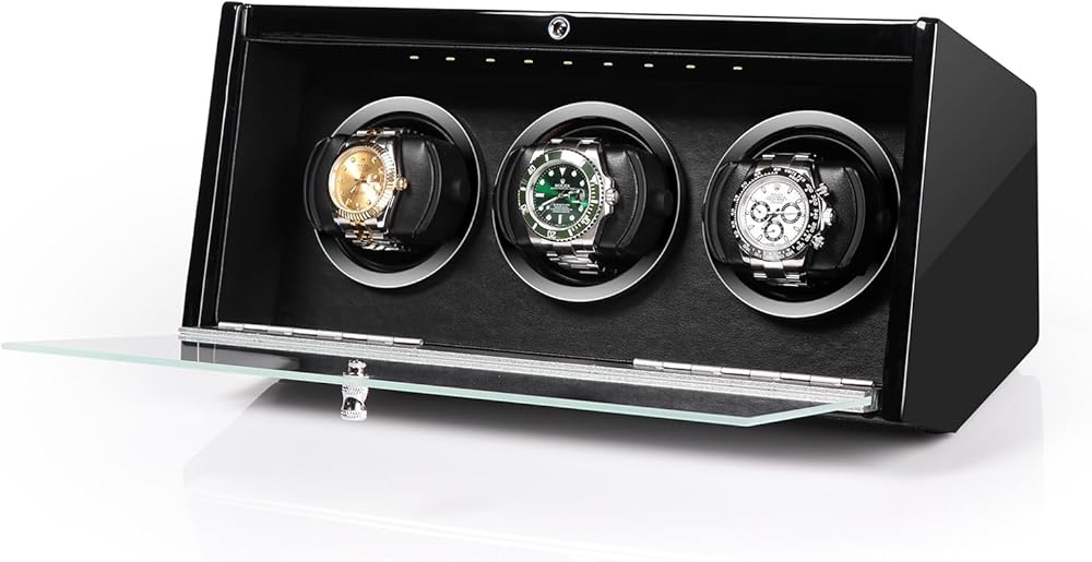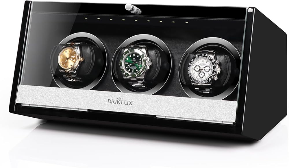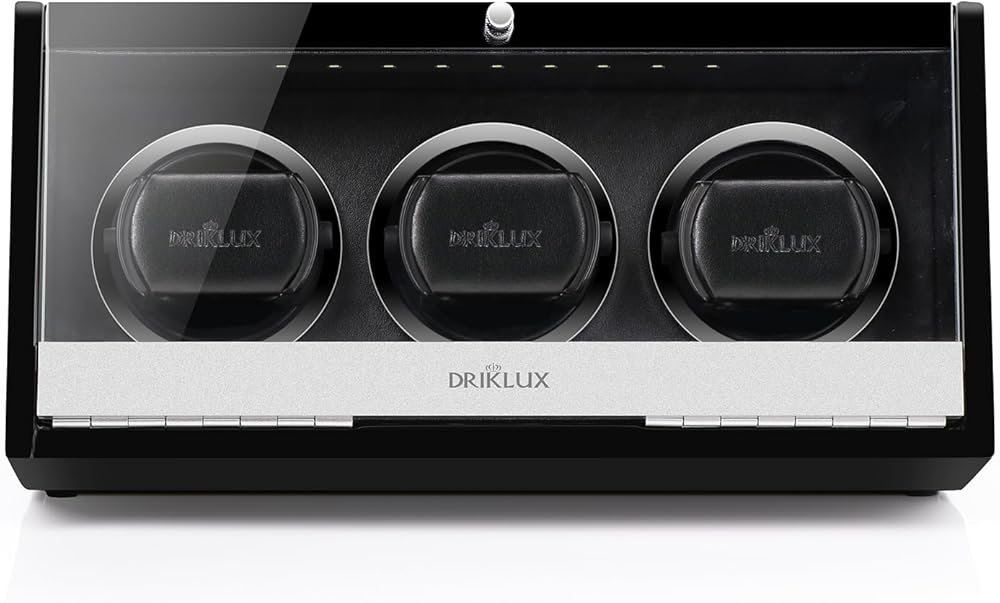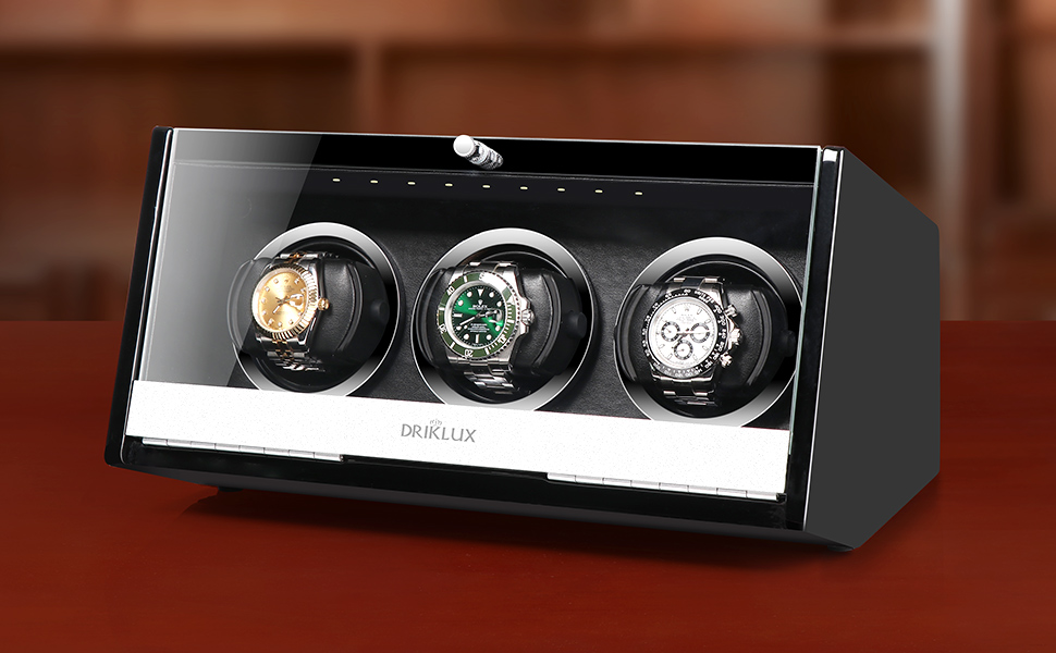 صندوق لف ساعة أوتوماتيكي صامت بإضاءة LED من DRIKLUX مع دعامة حاصلة على براءة اختراع ولمسة نهائية من طلاء البيانو