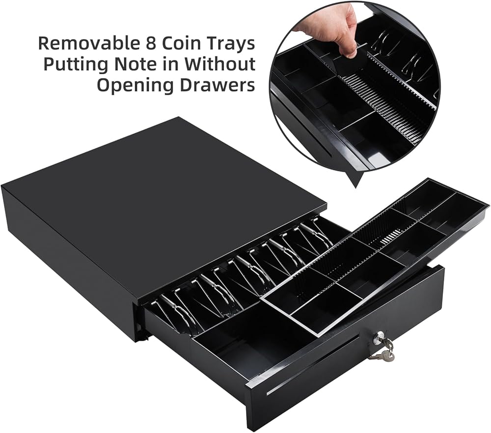 • 【5 Bill and 8 Coin Compartments】 Keep your bills and coins separate and easily accessible. The cash drawer features five bill compartments to secure various denominations and five coin compartments for precise change management.