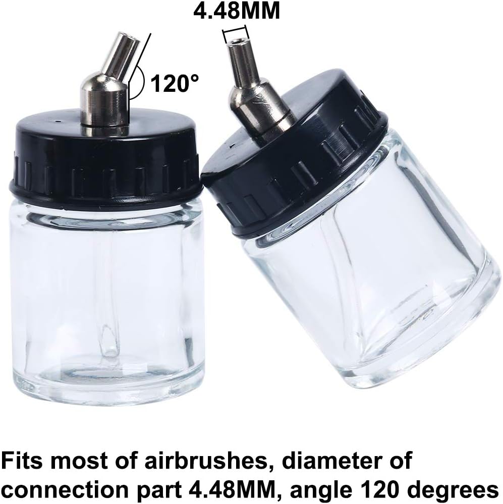 3- This bottle fits most airbrushes but not all, before you purchase, please kindly check whether this bottle suits your airbrush, the diameter of bottle's connection tube is about 4.48MM, angle is 120 degree, for details, please kindly check the 2nd picture of this listing; thanks much