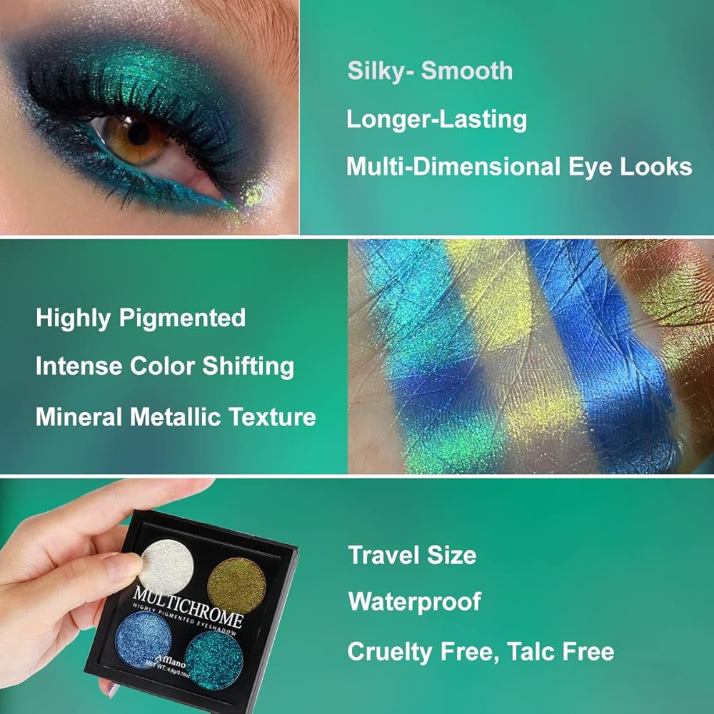 لوحة ظلال العيون جليتر متعددة الألوان من أفلانو، لوحة ظلال عيون معدنية لامعة من الكروم الحرباء قابلة للمزج، مكياج سومبرا دي أوخوس ثلاثي الأبعاد لامع للعيون الخضراء والزرقاء