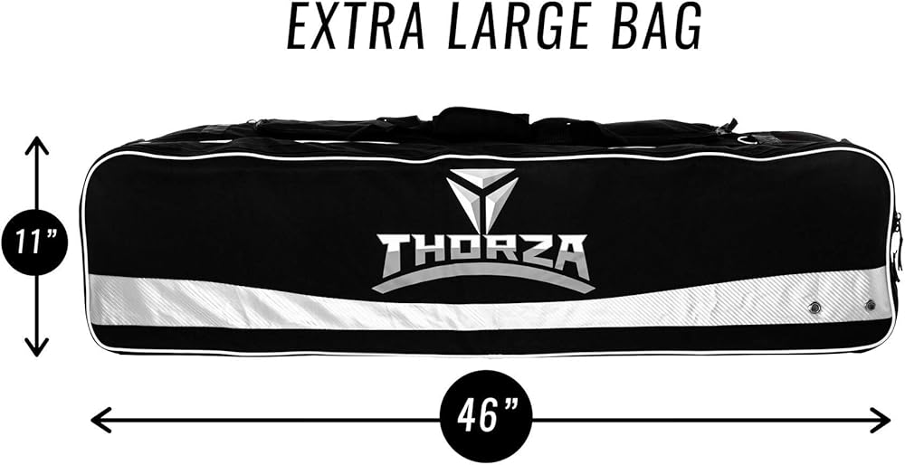 خفيفة الوزن ومناسبة للسفر - صُنعت حقائب Thorza lacrosse Stick لتكون سهلة الحمل للغاية ومناسبة للسفر، وهذا هو السبب في أنها توفر سعة كبيرة جدًا، ومقابض حمل سريعة الإمساك، وحزام كتف قابل للتعديل للرحلات الطويلة.