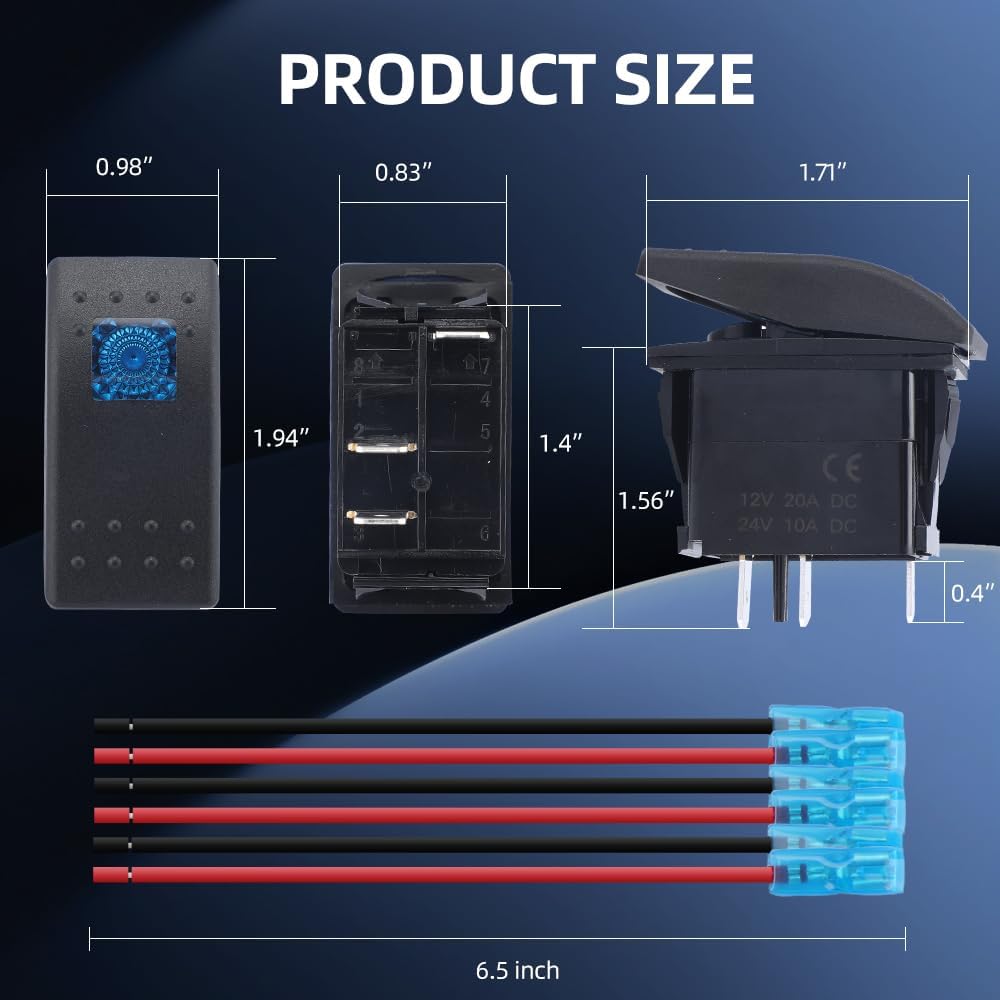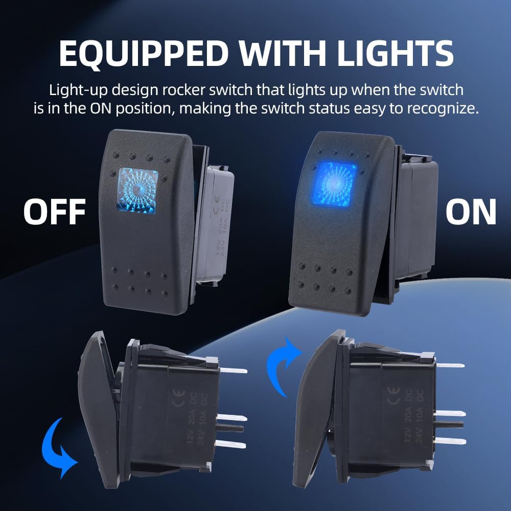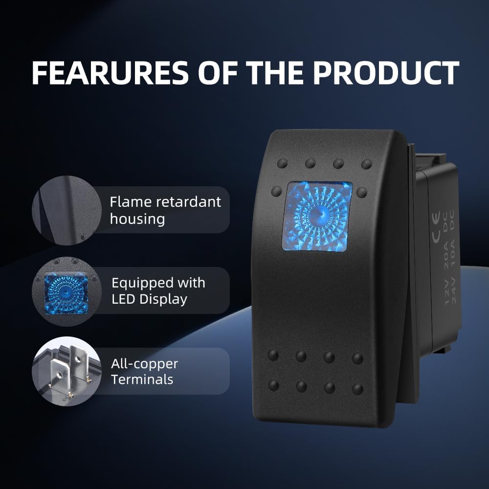 ♥ 【معلمات العمل 】تيار التشغيل والجهد: 20A/12VDC 10A/24VDC؛ الدبوس: 3؛ النوع: SPDT؛ Led: أزرق. عند التبديل إلى التشغيل، يضيء المصباح، عند التبديل إلى وضع إيقاف التشغيل، ينطفئ المصباح.