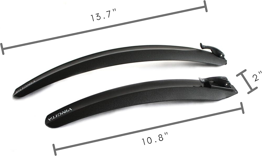 🚲يتضمن كلا من واقي الطين الأمامي والخلفي: حجم الحاجز الأمامي: 27.5 × 5 سم (10.5 × 2 بوصة) / حجم الحاجز الخلفي: 35 × 5 سم (13.7 × 2 بوصة). وزنه 180 جرام فقط .