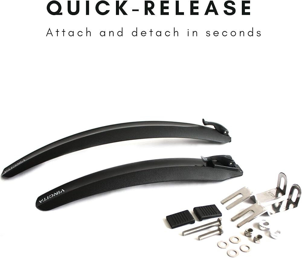 🚲مصمم بمشبك على الدراجة - واقي الطين سريع الفك، لذا إذا كان يومًا مشمسًا، يمكنك إخراج الحاجز الأمامي والخلفي في غضون ثوانٍ. من السهل أيضًا إخراج الواقي وتنظيفه بعد يوم ممطر أو في حالة وجود شيء عالق بين الإطارات.