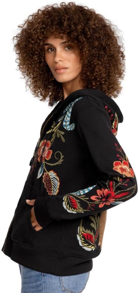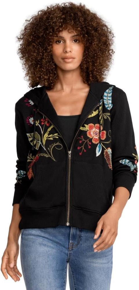 سترة بغطاء للرأس بسحاب للنساء من Johnny Was، باللون الأسود