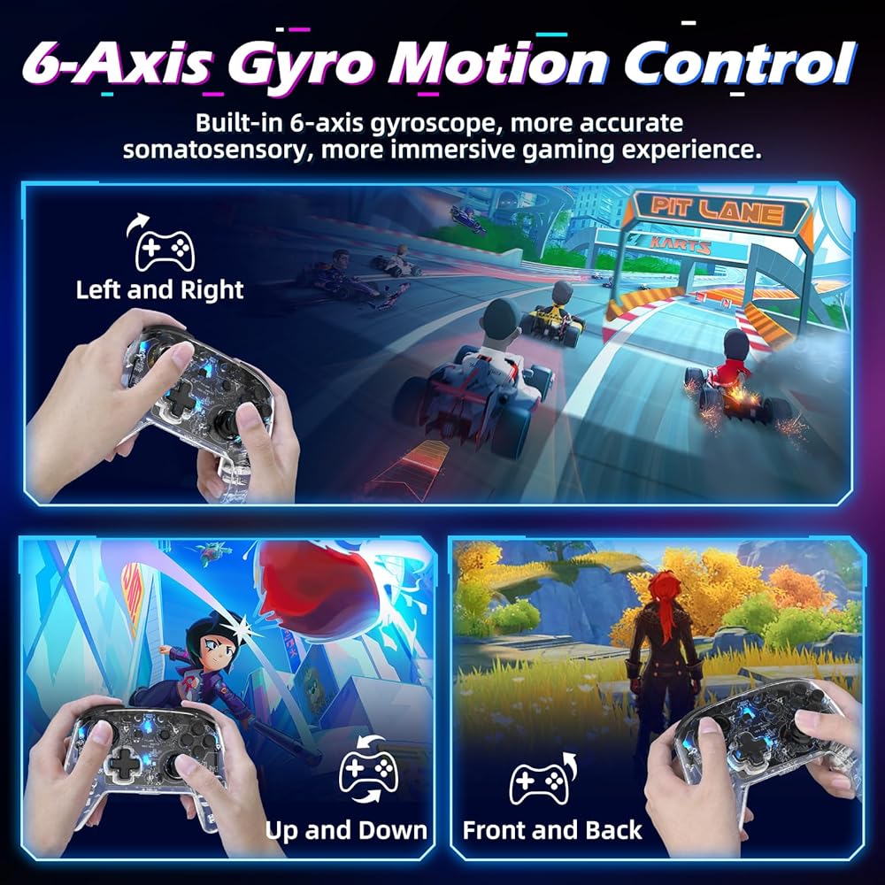【الأجهزة المتوافقة】وحدة التحكم الشفافة هذه من IINE متوافقة تمامًا مع Switch/Lite/OLED. بالإضافة إلى ذلك، فهو يدعم أيضًا ألعاب منصة PC Steam. (ملاحظة: يدعم PC Steam الاتصالات السلكية فقط)