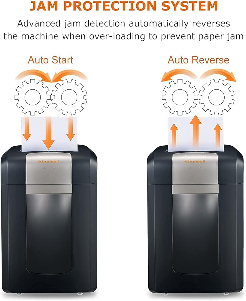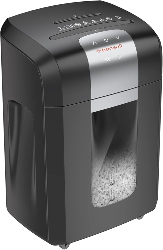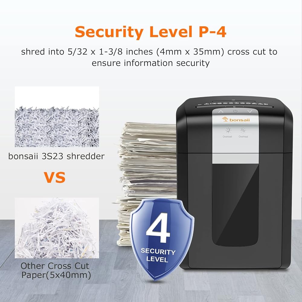 【آلة تمزيق ورق الأمان P-4】آلة تمزيق الورق عالية التحمل من Bonsaii للمكتب مجهزة بسكاكين فولاذية مدمجة متينة لضمان سرعة تمزيق فعالة. يمزق الورق بسرعة إلى جزيئات صغيرة بحجم 5/32 × 1-3/8 بوصة (4 × 35 مم)، مما يجعله خيارًا جيدًا لتمزيق المستندات السرية والبريد الإلكتروني وبطاقات الائتمان وما إلى ذلك في مكتبك وبيئة العمل.