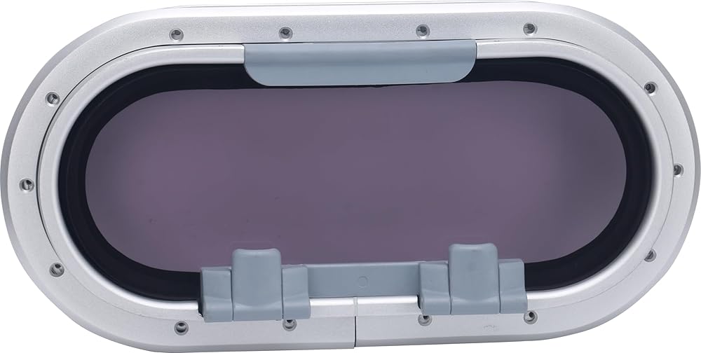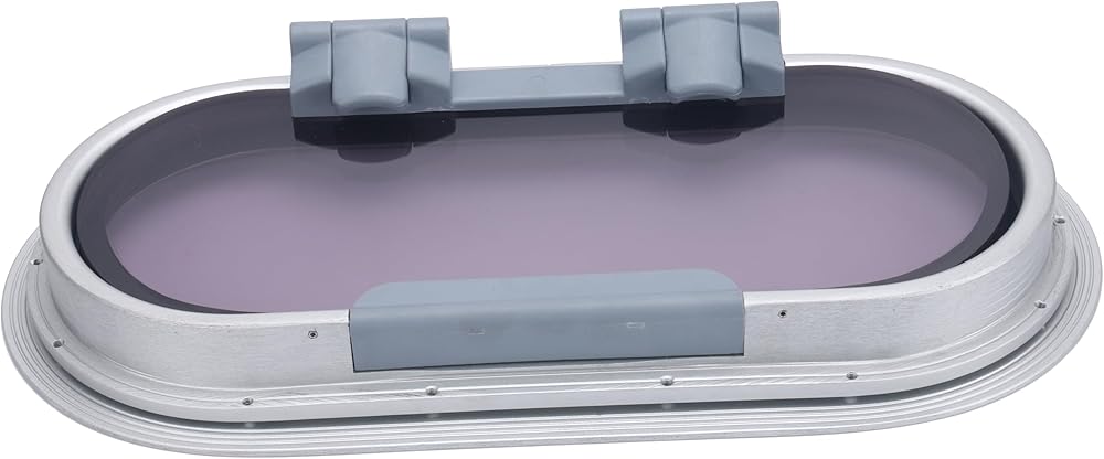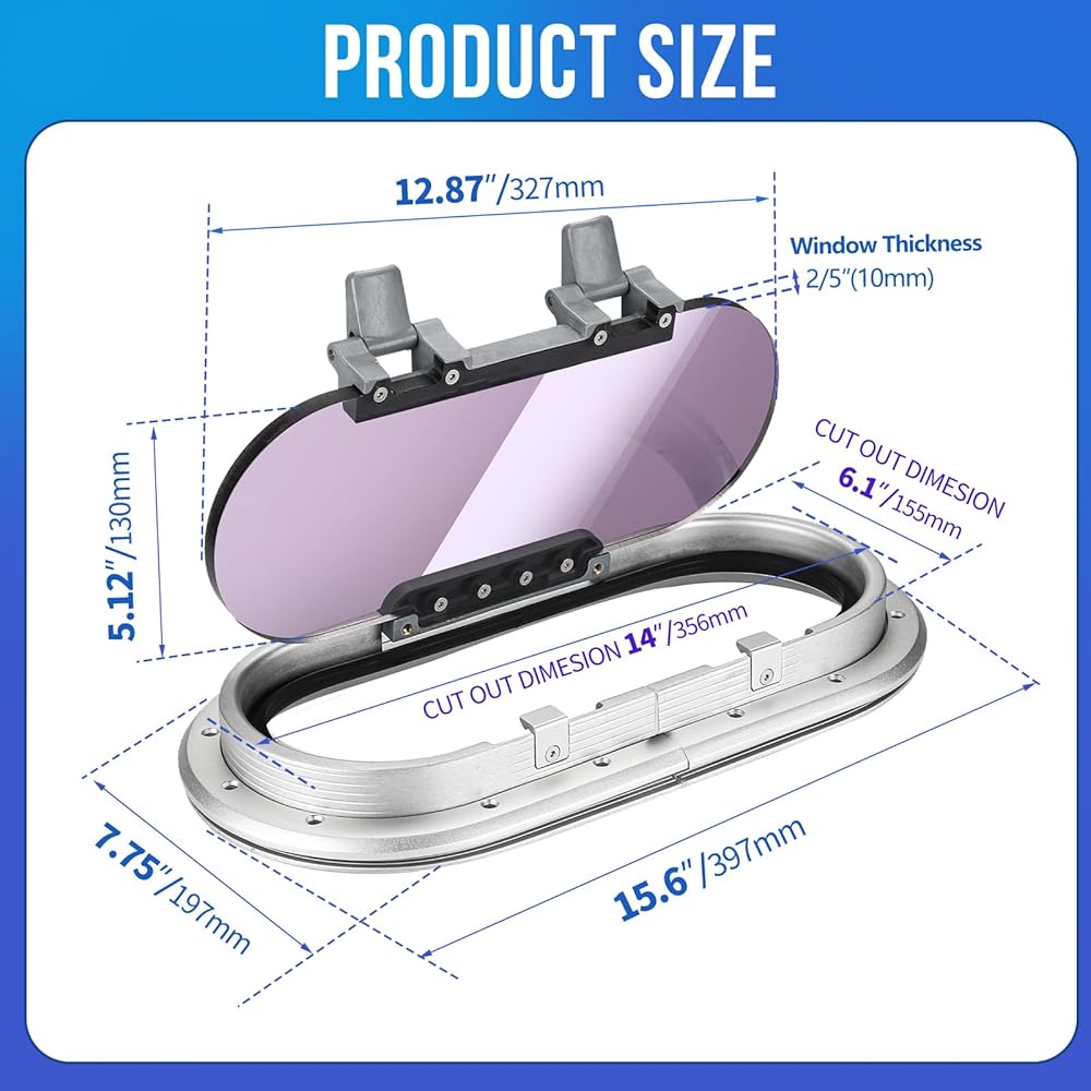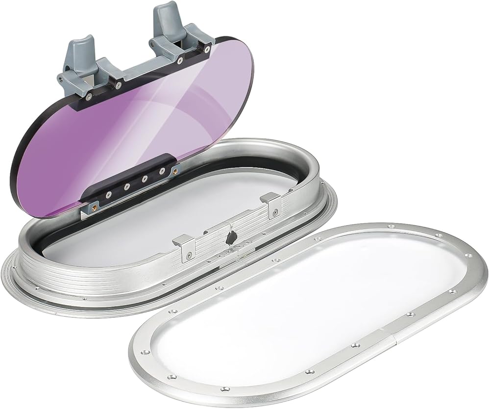 Anodized Aluminum Boat Porthole Window Boat Hatch Lids 14 inch *6 inch Truck RV Glass material Acrylic Smoke-Grey Tempered Glass Window Shield against harsh sunlight Ensure that the light can enter the cabin, improving the brightness of the cabin,but not too bright.