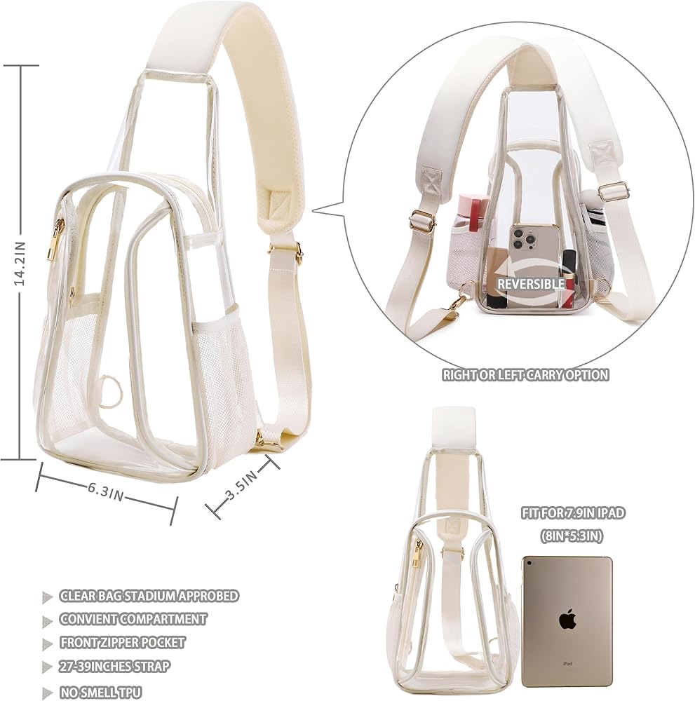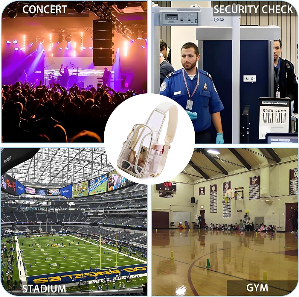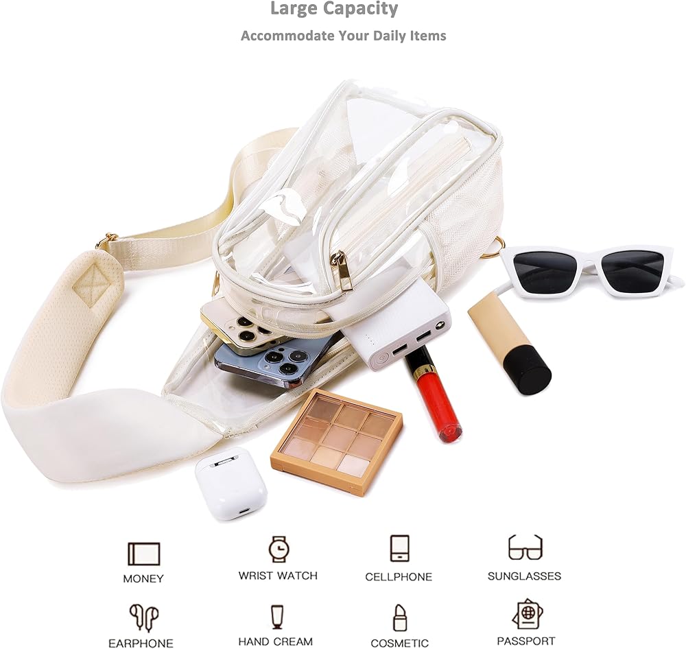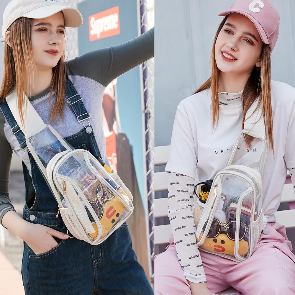 【وفر الوقت والراحة】: حقيبة ظهر شفافة على الصدر مع رؤية كاملة في كل مكان. قم بالمرور عبر الأمان باستخدام الحقيبة الشفافة لتجنب رفضك في المطار أو عند بوابة الاستاد. كما أن التصميم الشفاف يجعل من السهل العثور على ما تحتاجه، مما يسمح لك بالتحقق من العناصر بسرعة قبل الخروج.