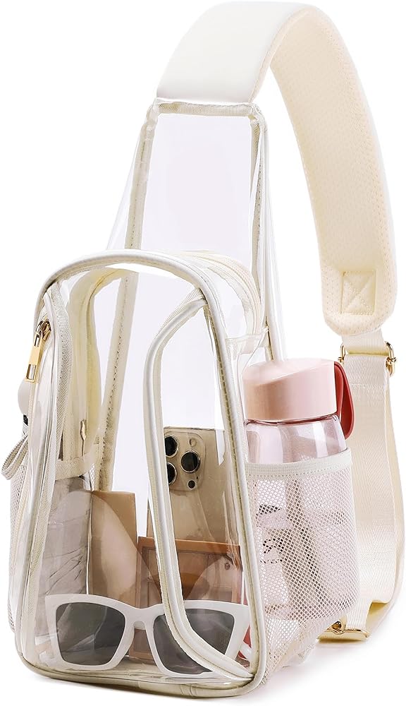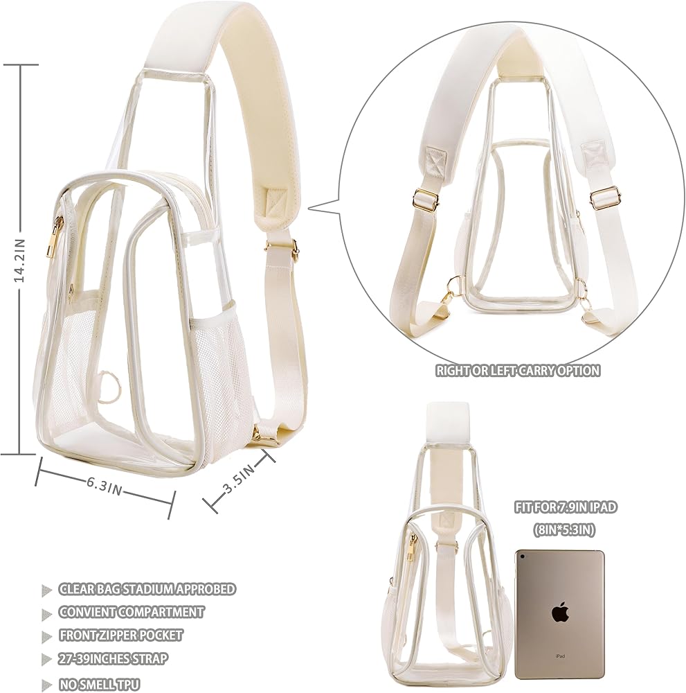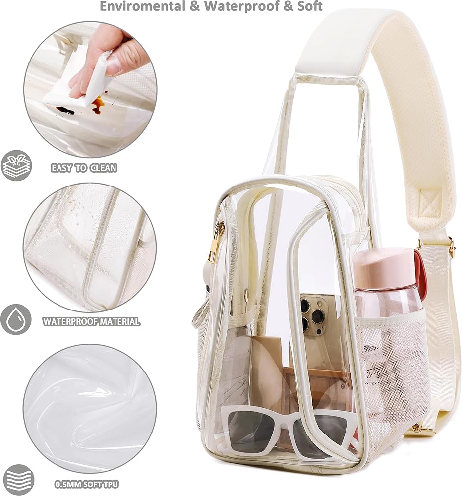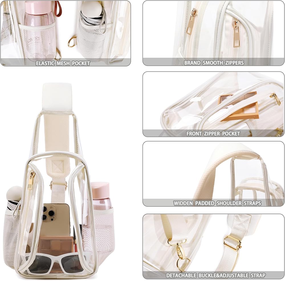 【وفر الوقت والراحة】: حقيبة ظهر شفافة على الصدر مع رؤية كاملة في كل مكان. قم بالمرور عبر الأمان باستخدام الحقيبة الشفافة لتجنب رفضك في المطار أو عند بوابة الاستاد. كما أن التصميم الشفاف يجعل من السهل العثور على ما تحتاجه، مما يسمح لك بالتحقق من العناصر بسرعة قبل الخروج.