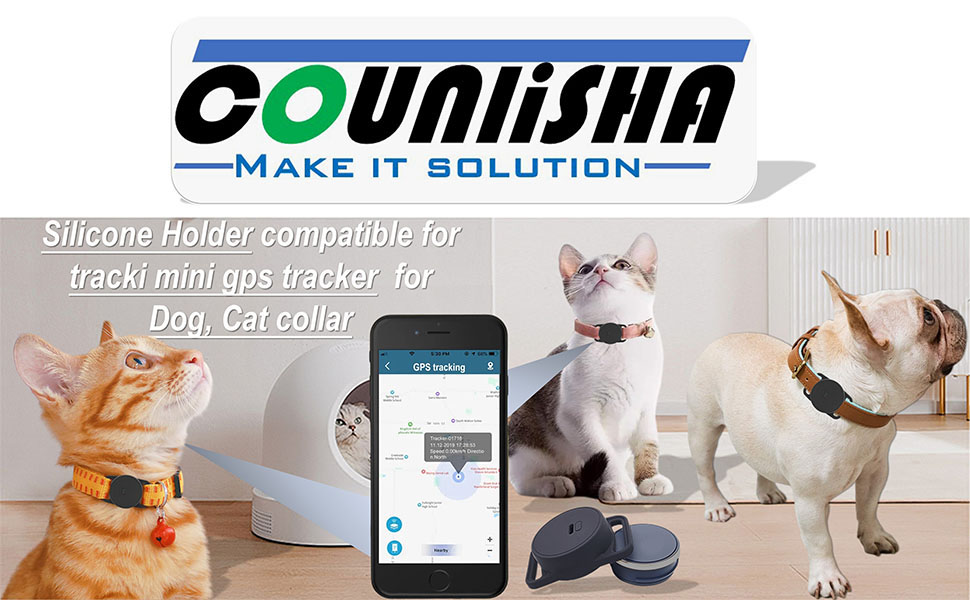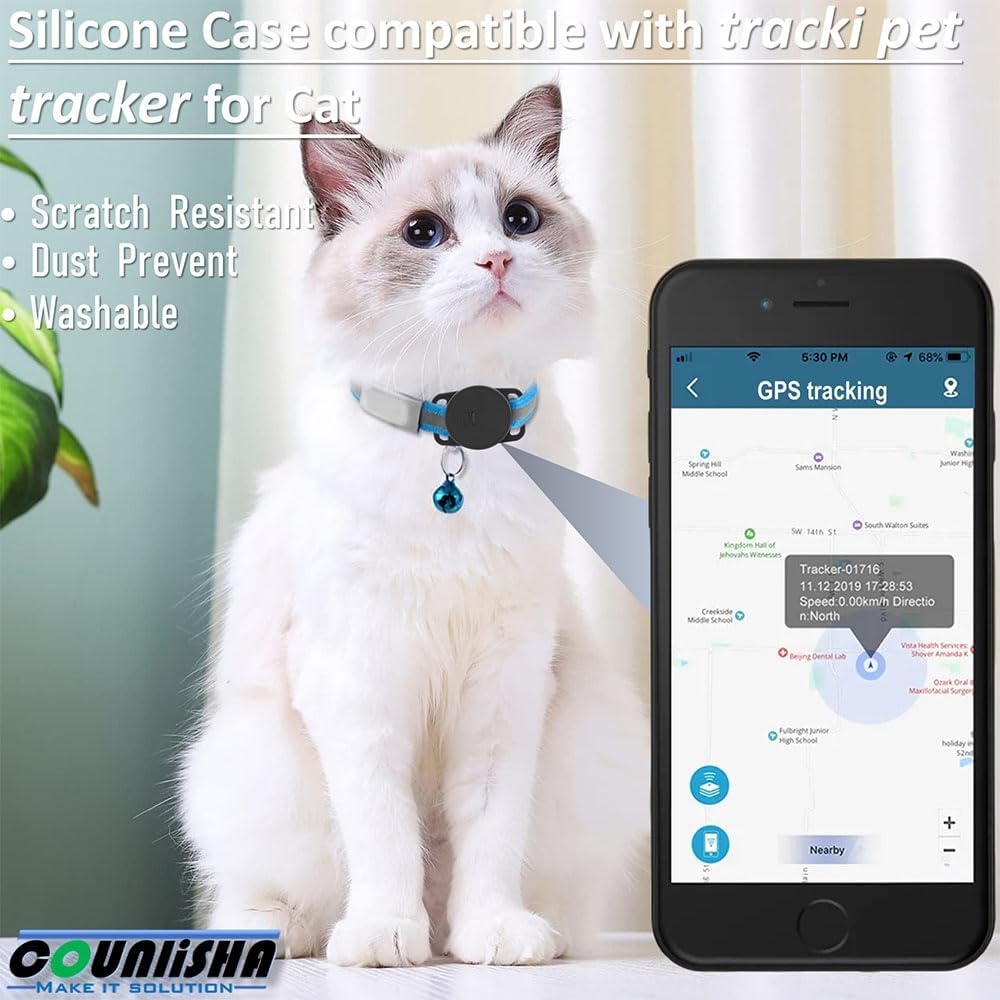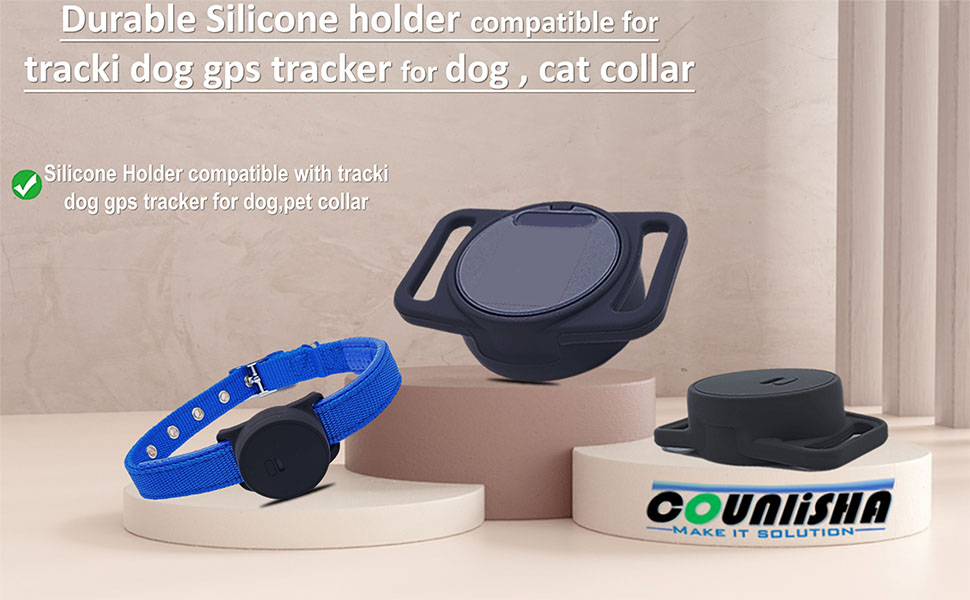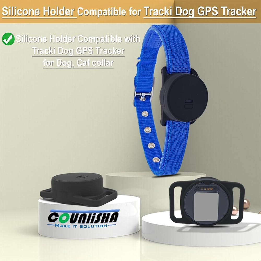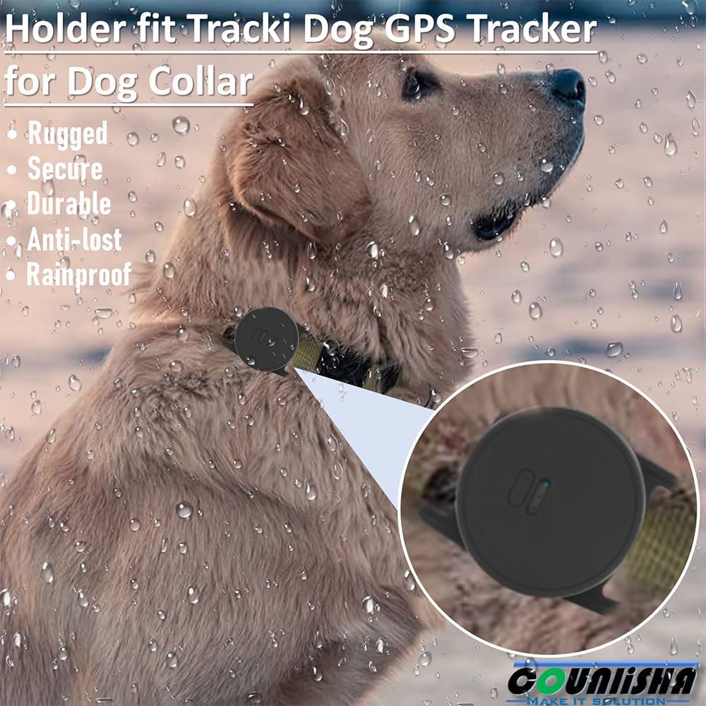 حامل سيليكون متوافق مع جهاز تتبع نظام تحديد المواقع للكلاب Tracki، غطاء إكسسوارات مطاطية مضاد للخدش، حافظة متينة وآمنة مع حزام لطوق الكلاب الأليفة والقطط (أسود)