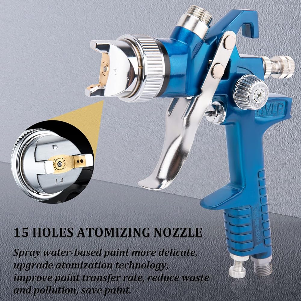 Reliable And Durable HVLP Spray Gun: The needle and nozzle of HVLP paint sprayer are made of high-quality materials, which are durable and durable, can be used for a long time, wear resistance and scratch resistance.