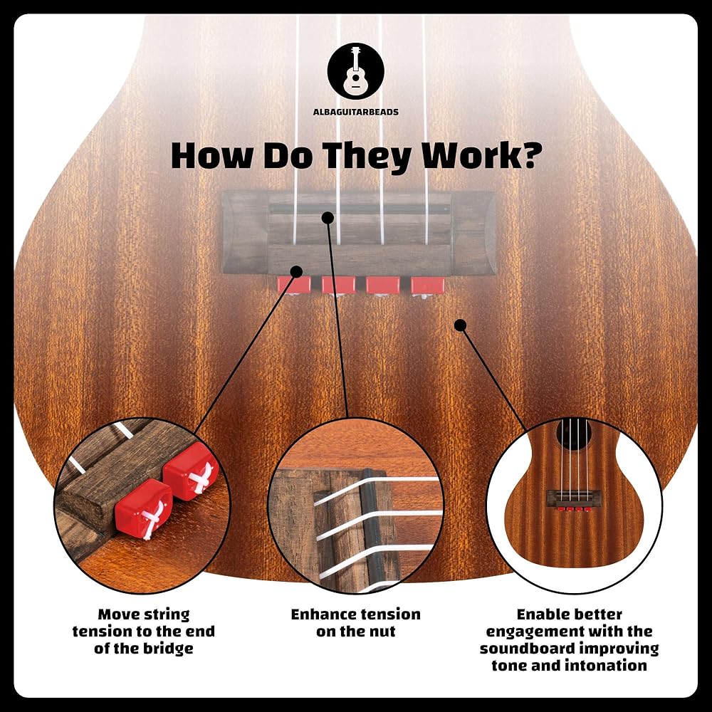 خرز جيتار ألبا باللون الأحمر اللامع للقيثارة، لأوتار القيثارة من النايلون