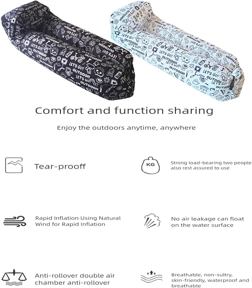 【تقنية متقدمة مضادة للتسرب والمقاومة للتمزق】تم تصميمنا الجديد والمحسن لحمل الكمية المثالية من الهواء من أجل نفخ يدوم لفترة أطول، كرسي الهواء مصنوع من طبقتين من الحقائب، الحقيبة الخارجية مصنوعة من مادة مانعة للتمزق 210T مقاومة للماء عالية الكثافة. نايلون، الحقيبة الداخلية مصنوعة من ألياف البوليستر عالية الجودة ومادة البولي إيثيلين عالية القوة، تأمين مزدوج يضمن ثقتك!