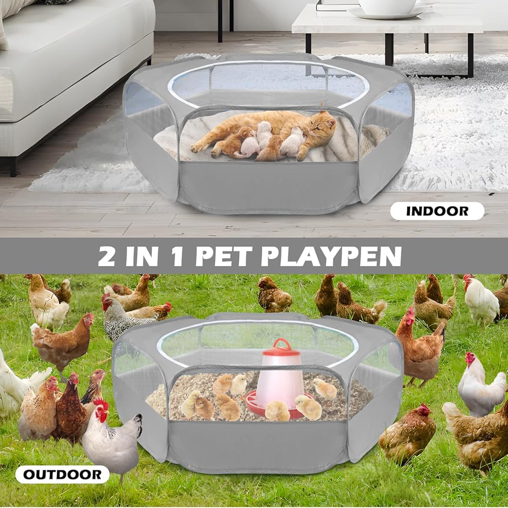 1.متعددة الأغراض: روضة الحيوانات الأليفة الخاصة بنا مناسبة للقطط والجراء والأرانب والفراخ والهامستر والشنشيلا والقوارض وغيرها من الحيوانات الصغيرة. لا يمكن وضعها في الداخل فقط كمكان للحيوانات الصغيرة للعب والراحة، أو كصندوق حضانة للحيوانات الأليفة حديثي الولادة، أو مكان لتخزين الألعاب للأطفال، ولكن أيضًا يمكن أخذها في الهواء الطلق لحمام الشمس. تتيح لهم المساحة الكبيرة الاستمتاع ببيئة مريحة وواسعة في الداخل.