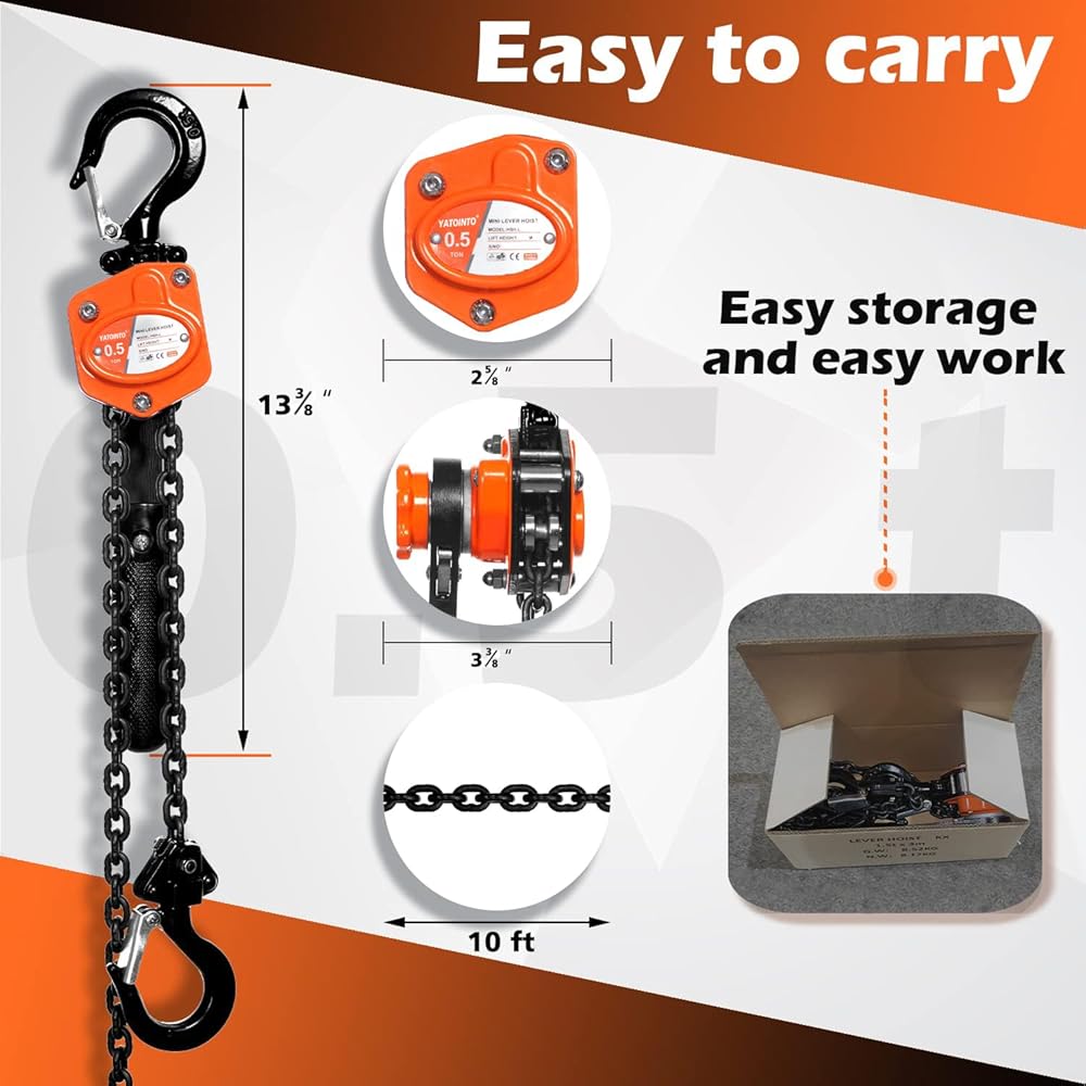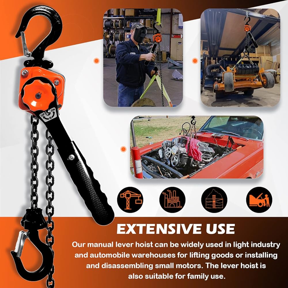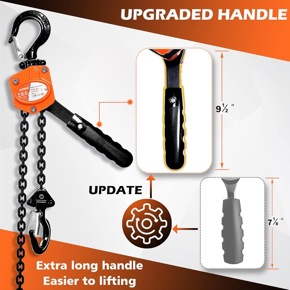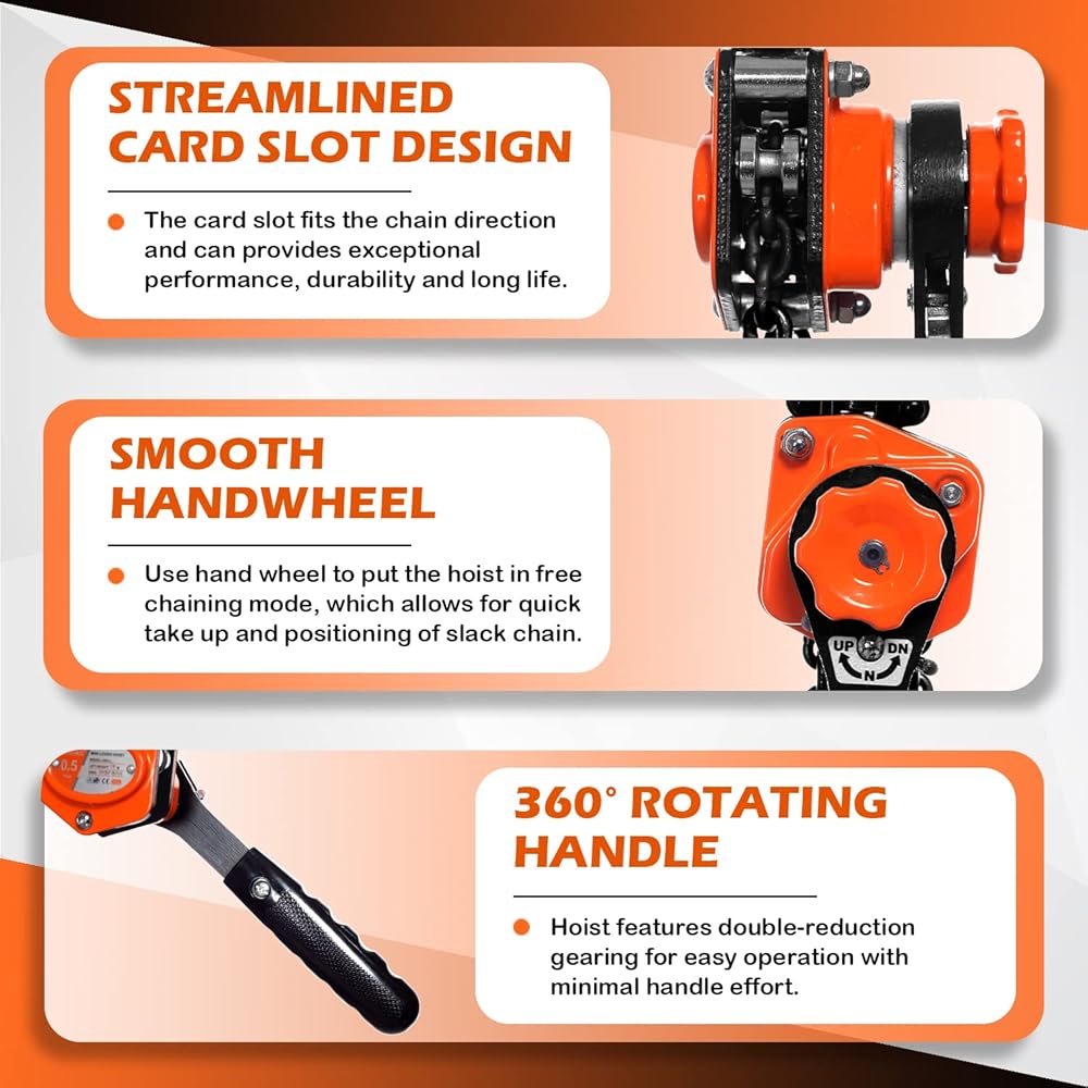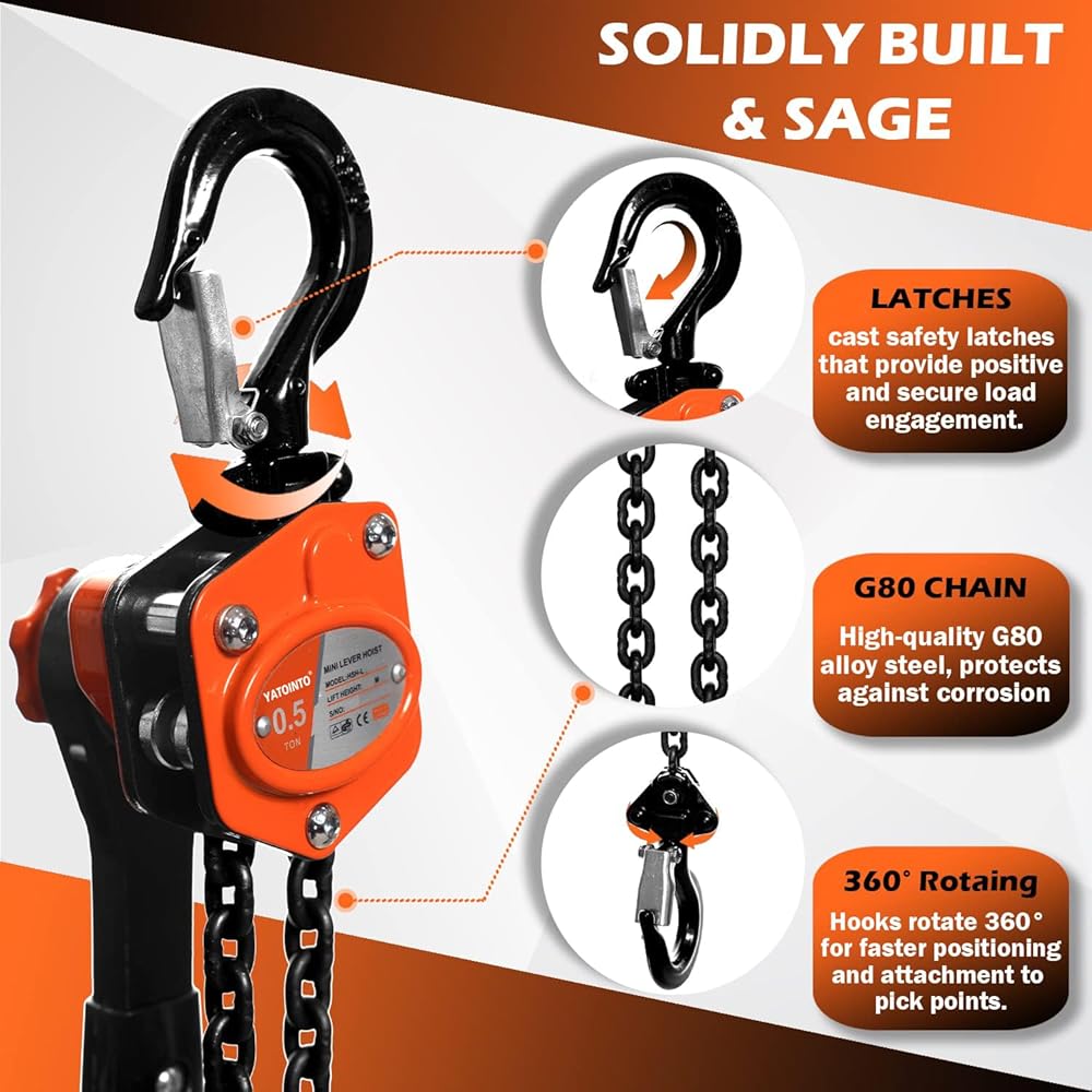 ⚙️【 تصميم إنساني 】-- مع مزلاج أمان لمنع السقوط، يمكن أن تساعدك الوسادة المطاطية المضادة للانزلاق على المقبض ورافعة السلسلة على تقليل المخاطر والحفاظ على بيئة عمل آمنة.