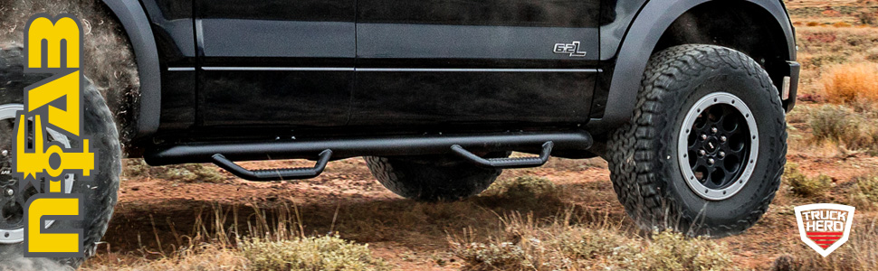 One of N-FAB's most popular styles is the Nerf Step in a Wheel to Wheel configuration that runs from the back of the front wheel to the front of the rear wheel. Utilizing N-FAB's patented hoop step and innovative mounting system. All N-FAB Nerf Step in th