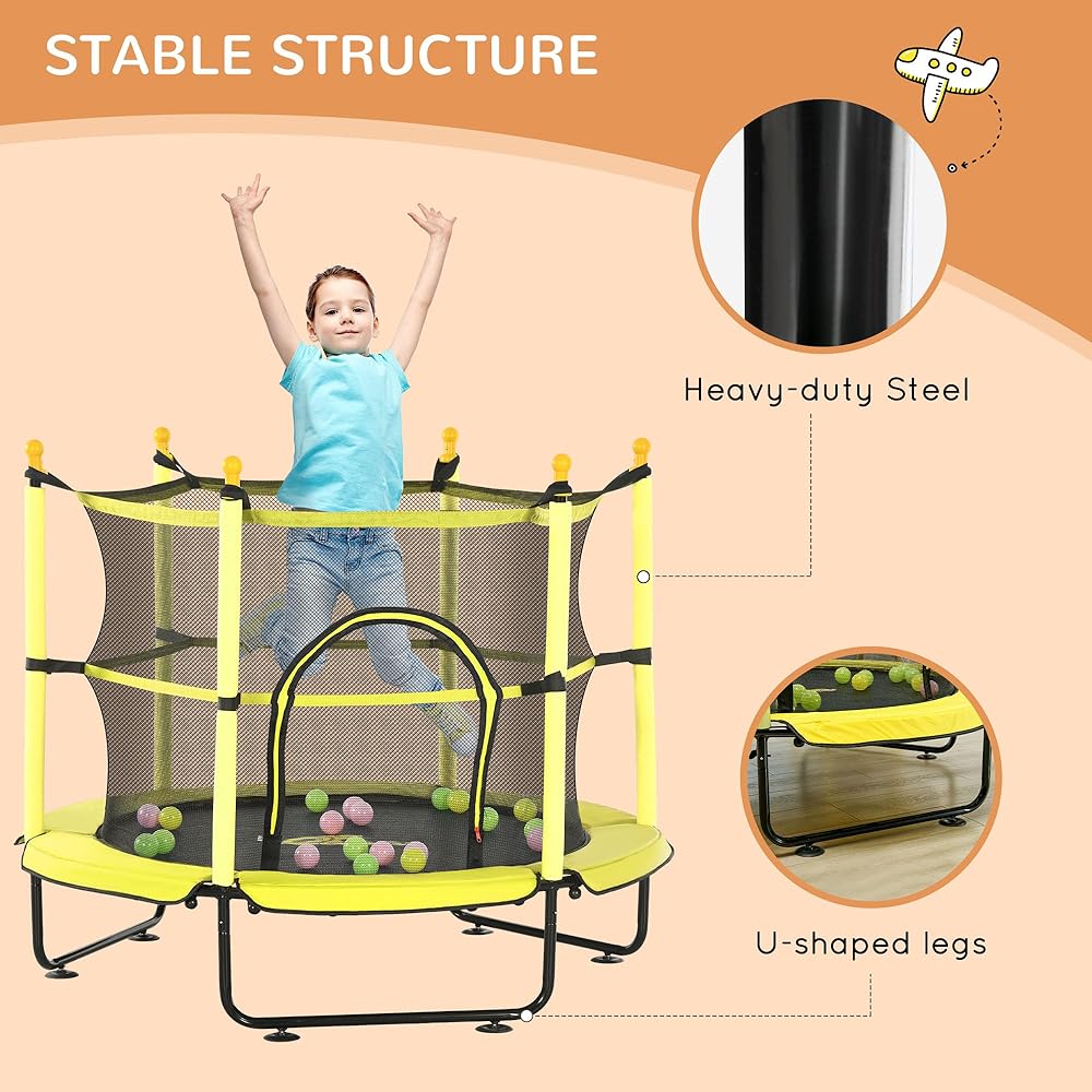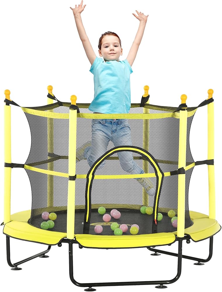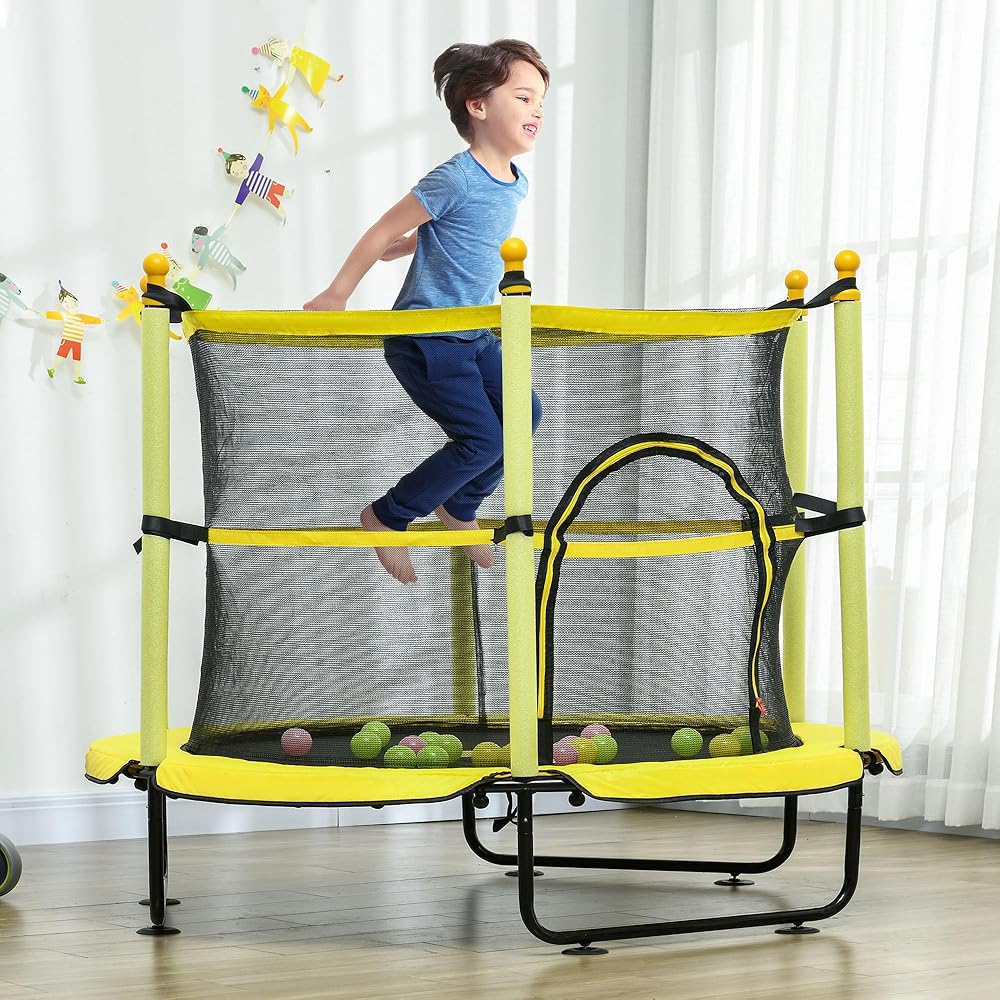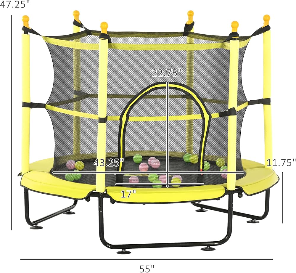 ترامبولين مقاس 4.6 بوصات للأطفال، ترامبولين للأطفال مقاس 55 بوصة مع حاوية أمان وحفرة كروية للاستخدام الداخلي أو الخارجي، مصمم للأطفال من سن 3 إلى 10 سنوات