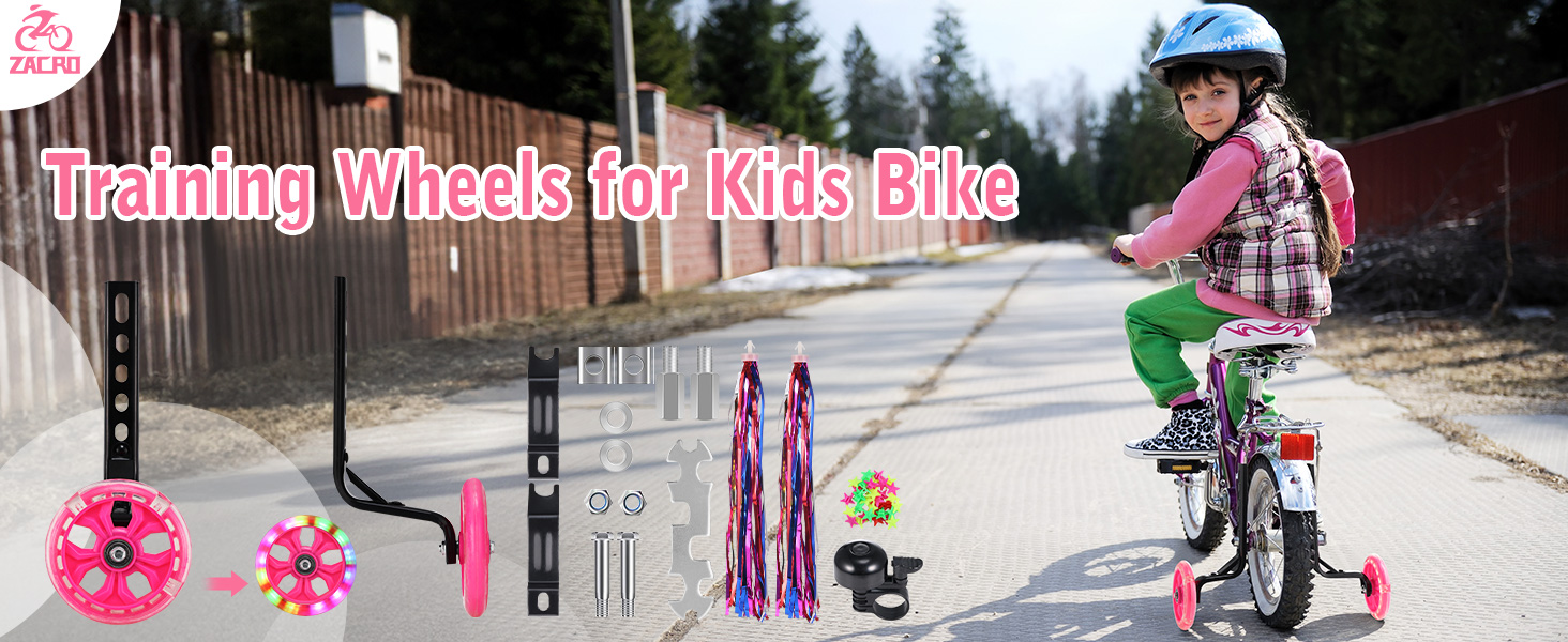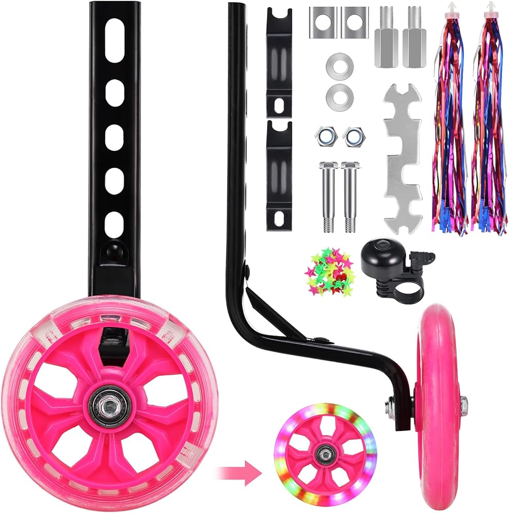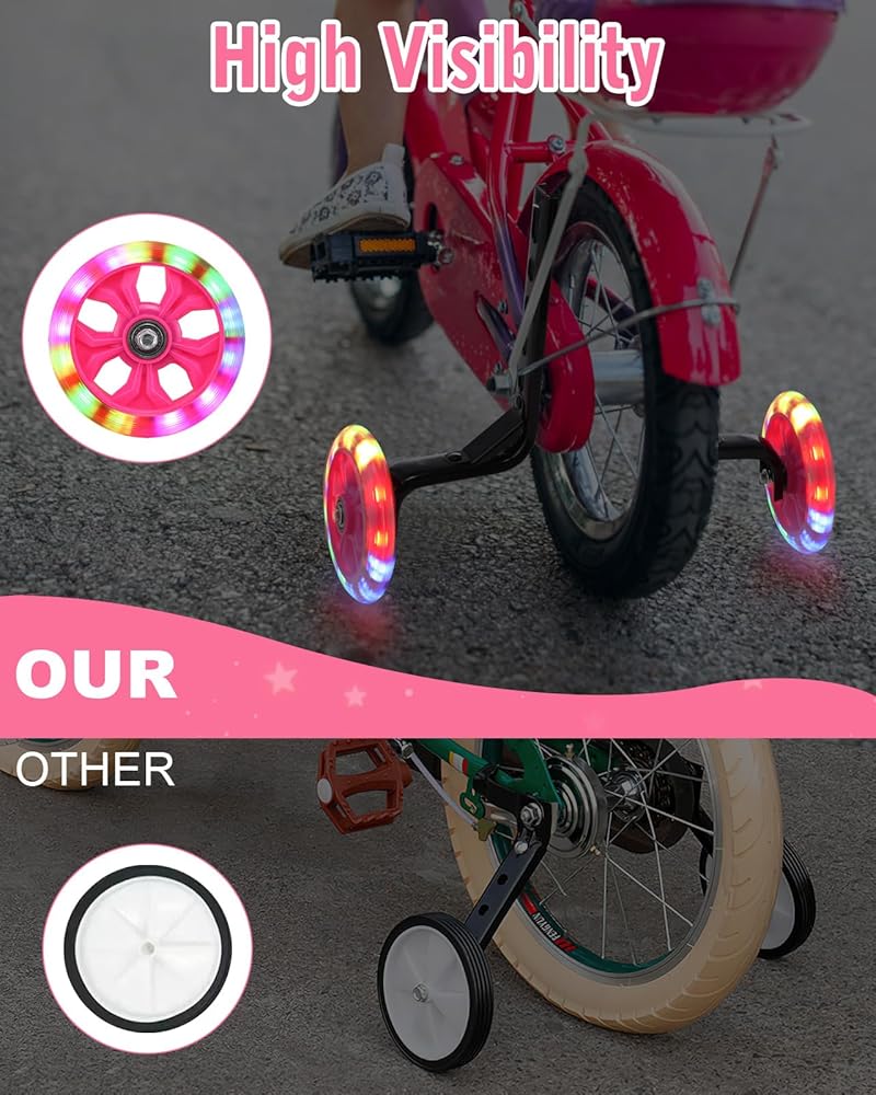 عجلات تدريب الدراجة Zacro عجلات فلاش كتم الصوت مع مسمار تمديدات محور الدراجة قابل للتعديل، عجلات تدريب لدراجة الأطفال 12 14 16 18 20 بوصة، عجلات تدريب عالمية للأطفال الصغار مع جرس