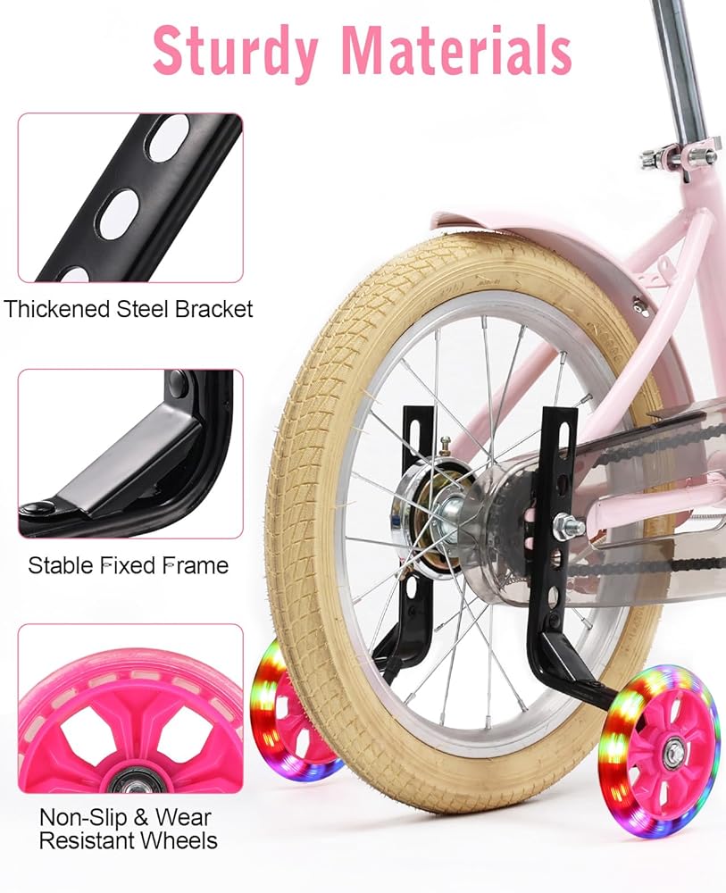 السلامة والثقة: بالنسبة للمبتدئين، تعد العجلات عالية الجودة ودعامات فولاذية ABS أكثر أمانًا واستقرارًا. يمكن لهذه المجموعة من المثبتات أن تساعد المتعلمين الصغار حتى يطوروا إحساسًا قابلاً للاستخدام بالتوازن على الدراجة، مما يضمن سلامة طفلك ويحسن ثقته.