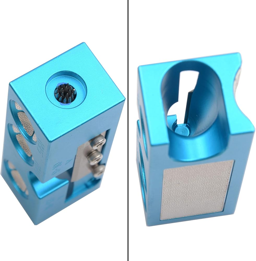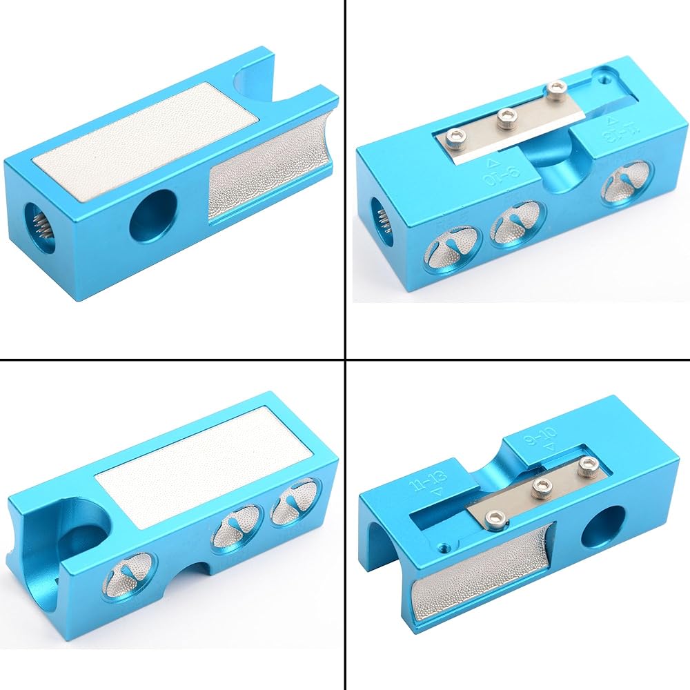 Material:Pool cue tip shaper is made of durable aluminum alloy as the main body,304 stainless steel grinding surface and blade. Bright Blue color.