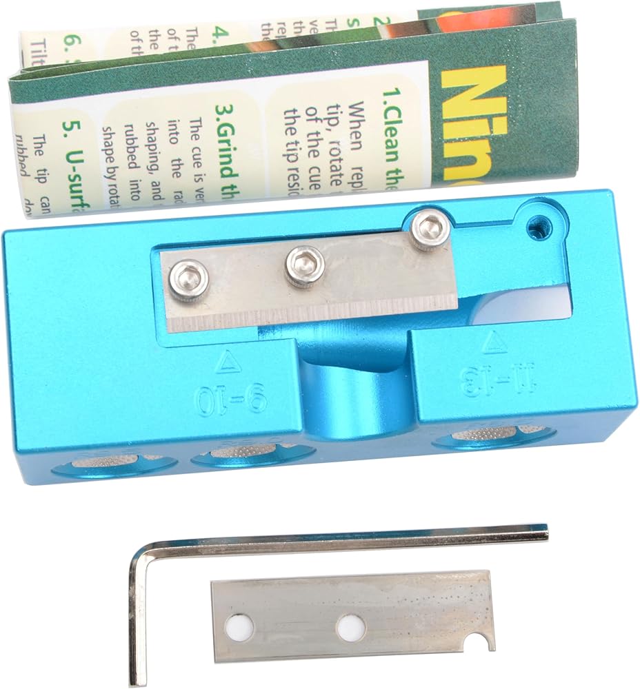 Upgraded Design: This pool cue tip tool adds the Cleaner function,which can cut off the old tips and clean up the remaining glue. After fixing the new tips.It's easy to replace the blades.design with 3 tapper.and you can adjust the position of the blade.