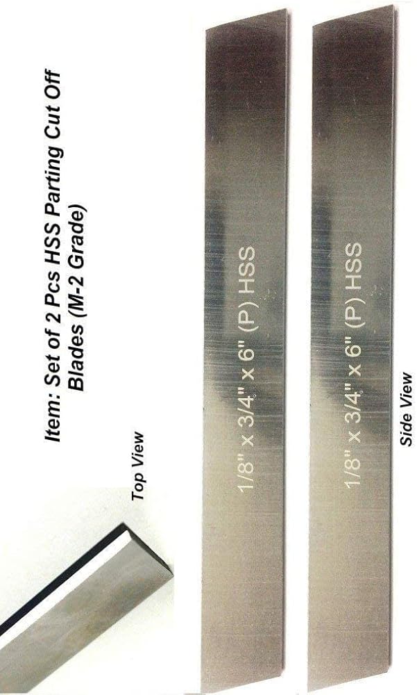 مجموعة Praztech مكونة من شفرتين شبه منحرفتين HSS مقاس 1/8 بوصة × 3/4 بوصة (عريضة) × 6 بوصة (طويلة) لقطع فواصل المخرطة وحوامل الأدوات - الصلبة والأرضية