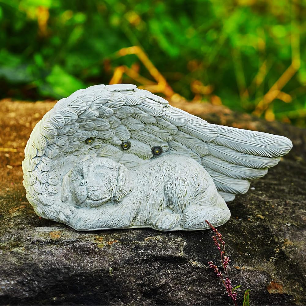 هدية تعاطف مع الحيوانات الأليفة المفقودة: تمثال كلب تذكاري ينام في جناح الملاك. تعتبر الحجارة التذكارية للكلاب هدية رائعة لإرسالها إلى صديق أو قريب حزين للتعبير عن تعاطفك.