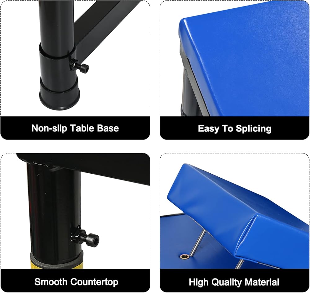 Adopt high quality steel as the support, steel surface with metal coating, strong and durable. The table and legs are covered with foam sponge for protecting users.