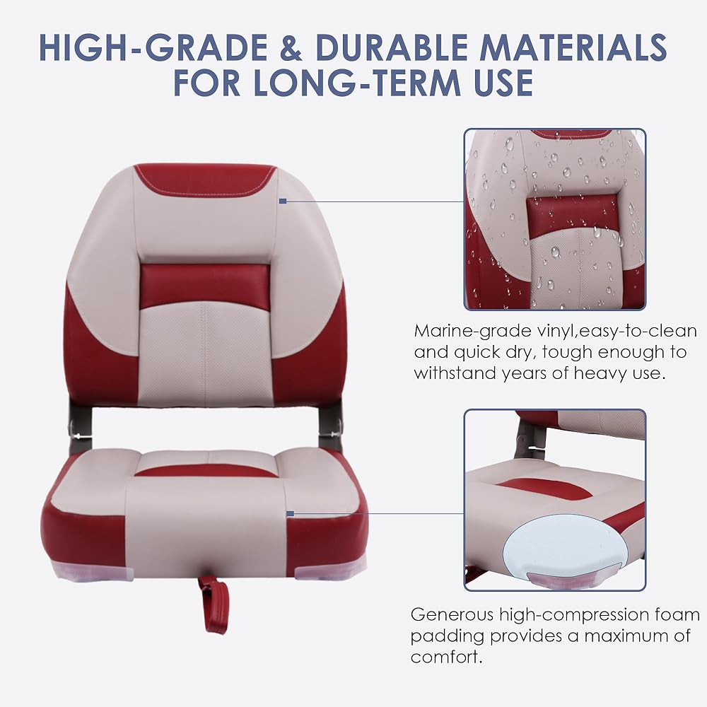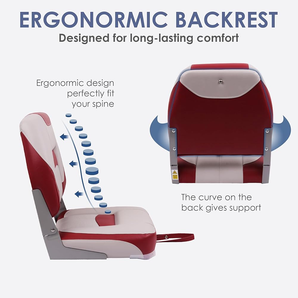 • ERGONOMIC FEATURES - According to the ergonomic design, our boat seat will reduce your back and vertebrae pain when you are sitting for a long time. The low backrest perfectly fits to the curve of human spine can give you strong support and help you release back pressure.