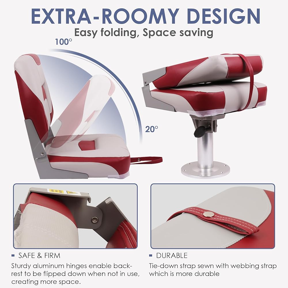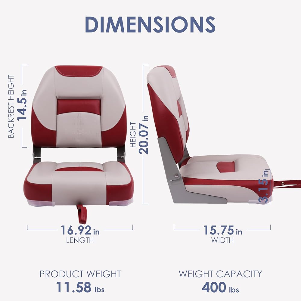 • HIGH SECURITY - High-impact injection molded plastic seat frame endows this folding boat seat with a strong loading capacity of up to 400 lbs, use with confidence and safety.