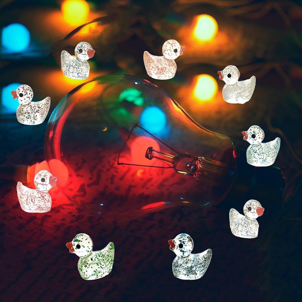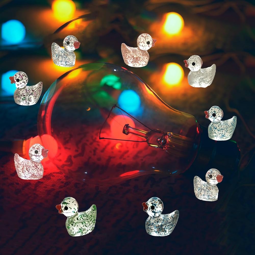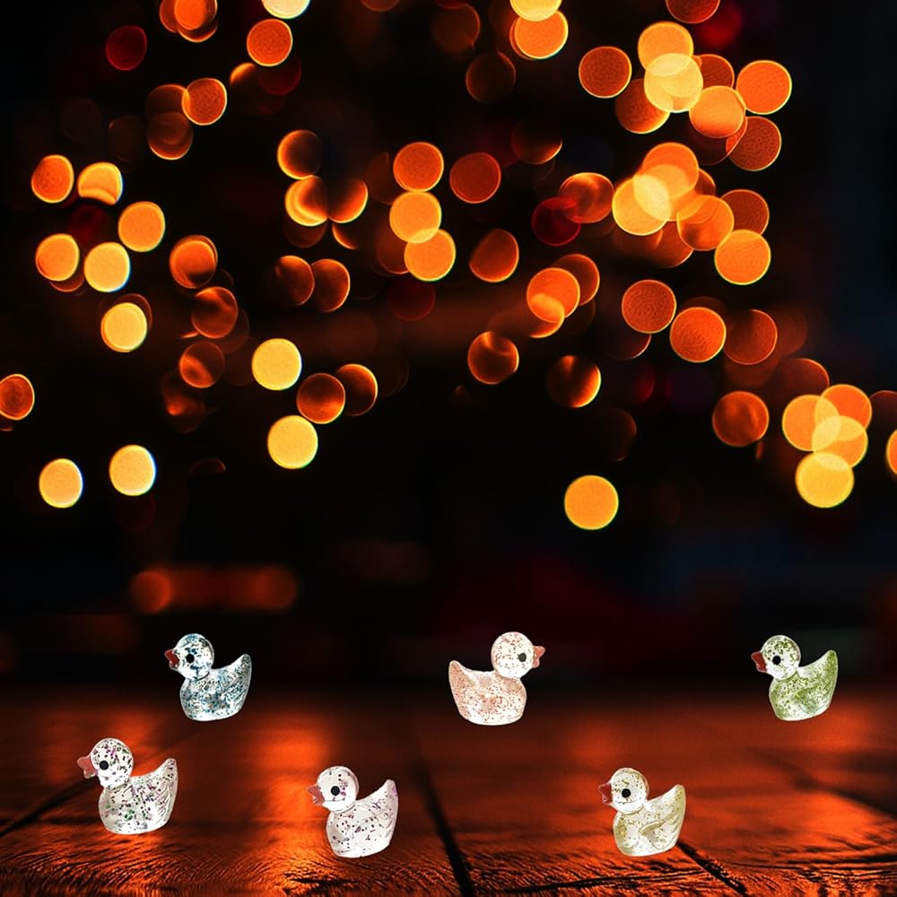 Package included: 60 pieces luminous mini resin ducks, 10colors, 6 pieces in each color, enough quantity to meet your diverse needs, such as cake toppers, dollhouse decoration, garden landscape aquarium decorating etc.