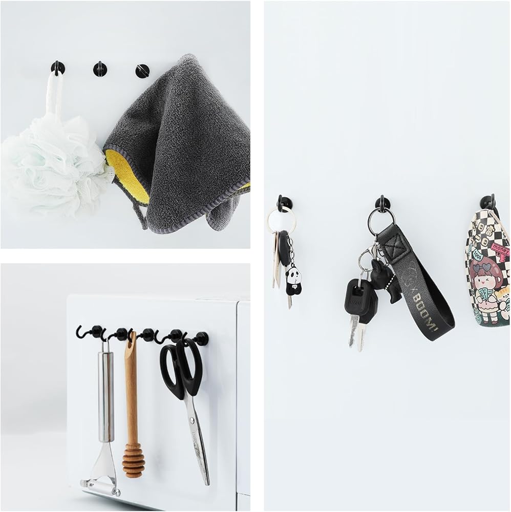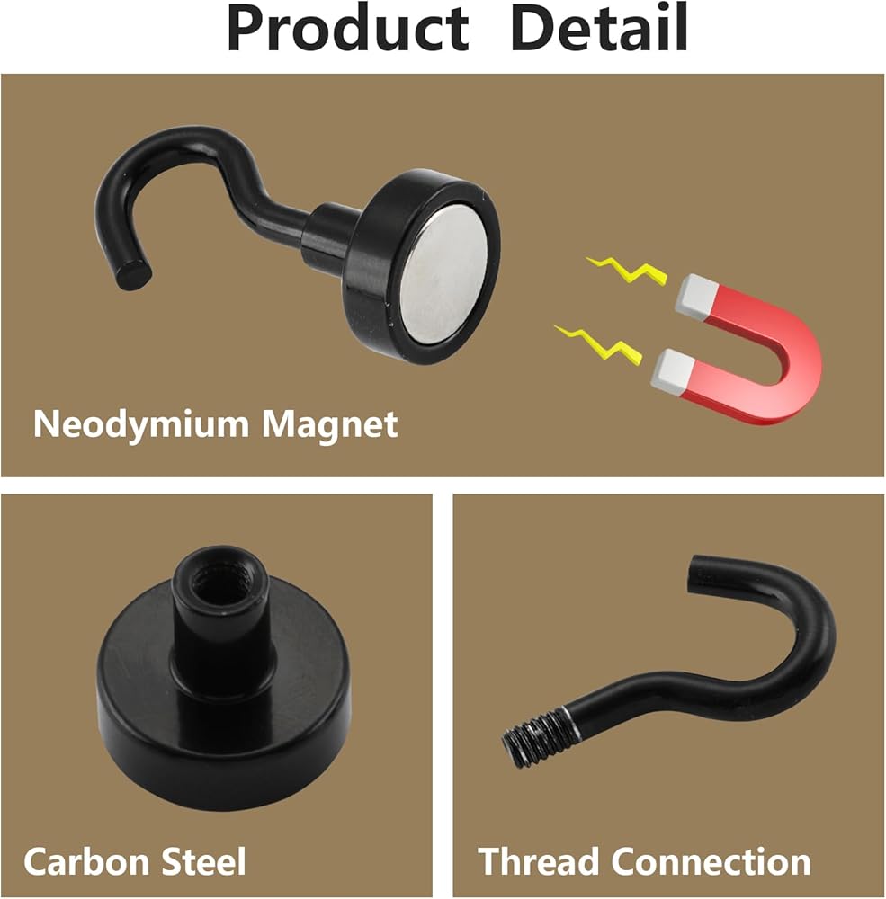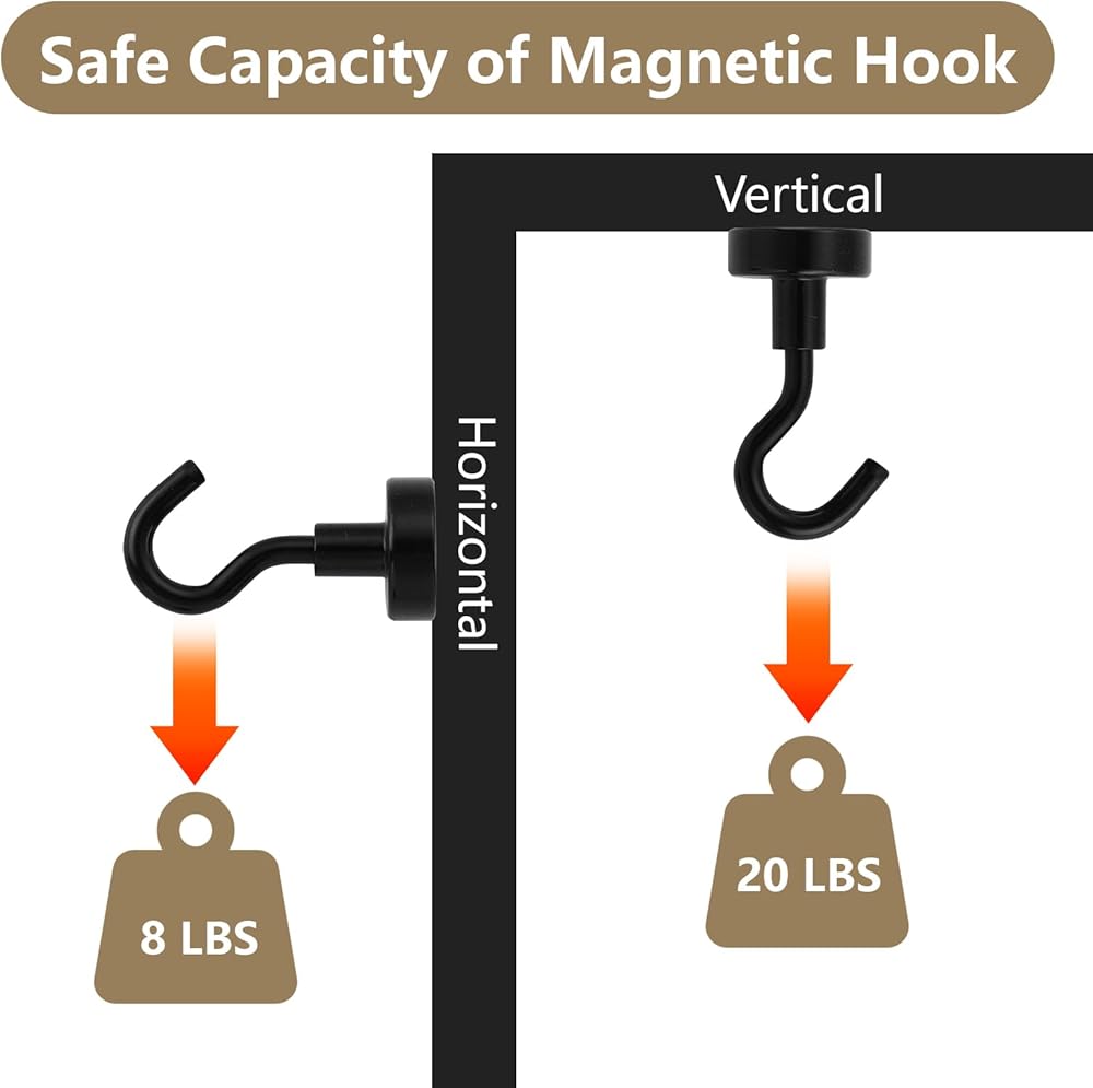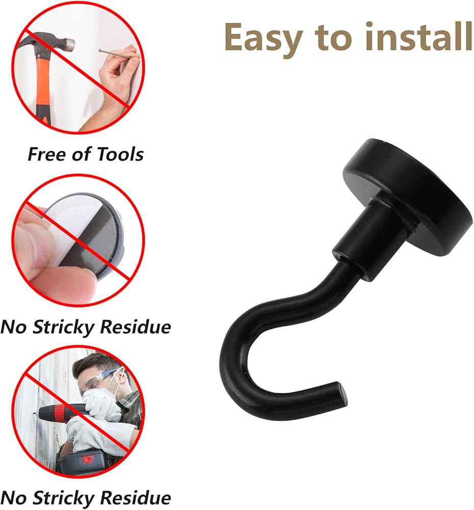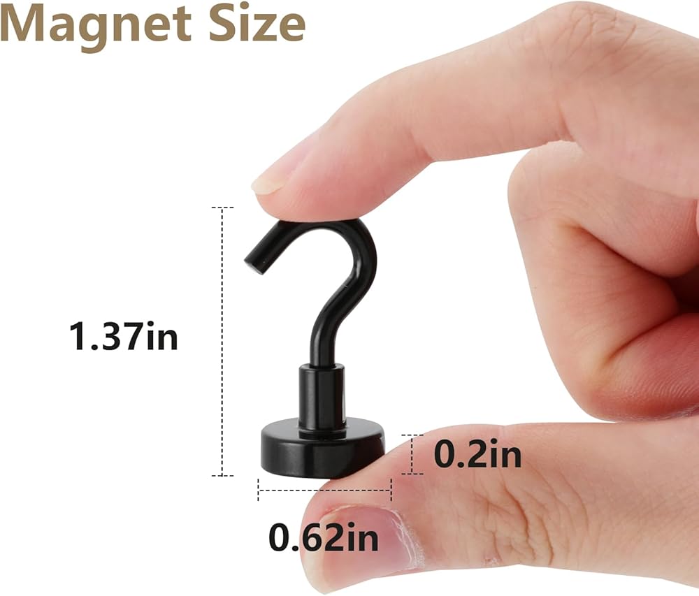 جودة عالية: الخطافات المغناطيسية مصنوعة من مغناطيس مغناطيسي قوي N40 والفولاذ الفاخر مع لمسة نهائية مطلية باللون الأسود، مصممة لمقاومة الخدوش اليومية والتآكل وفقدان البريق، ومتينة ومتينة