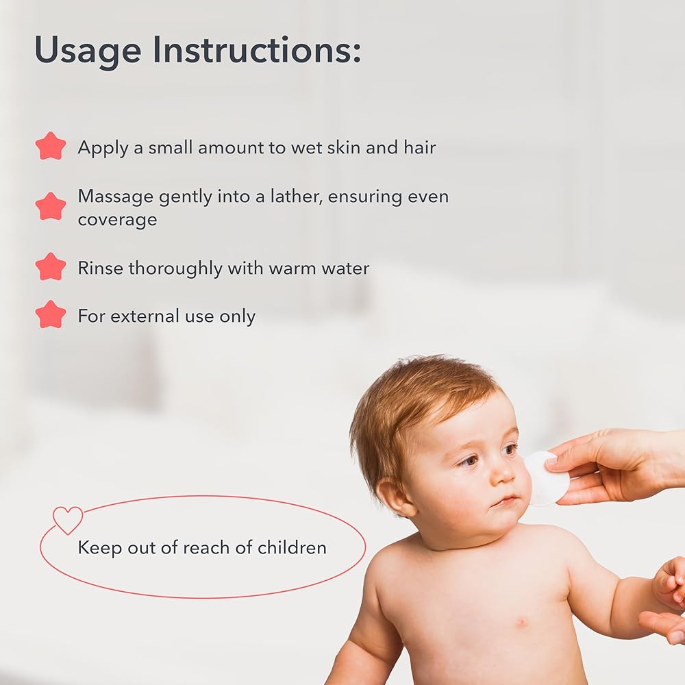 • 🌱 Rich Nourishment: This baby body wash doubles as a toddler body wash, enriched with Olive Oil and Cotton Extract for deep nourishment, making it an essential body wash for kids that's both gentle and hydrating.