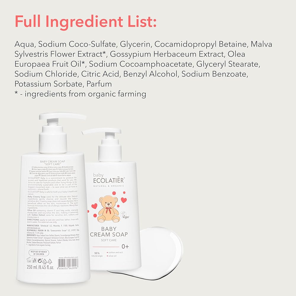 • 🌱 Pure and Safe: Ecolatier prioritizes your child's delicate baby skin, offering a baby bath wash that's as honest and safe as it is effective, perfect for daily use and free from harsh chemicals.