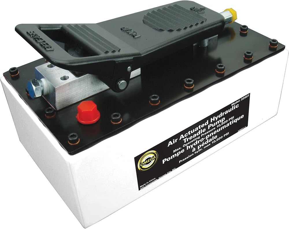 Omega 22907 Hydraulic Treadle Pump is the Omega Air Actuated Foot Pump that supplies the compressed hydraulic fluid to compatible applications, such as rams, presses, spreaders, compactors and crimping machines that up to 10,000 PSI of fluid pressure is needed.