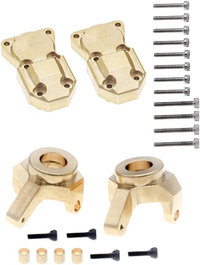 GTHELE Front&Rear Brass Diff Cover&Brass Steering Knuckle for 1/24 Axial SCX24 AXI90081 AXI00001 AXI00002 AXI00005 AXI00006 RC Crawler Car