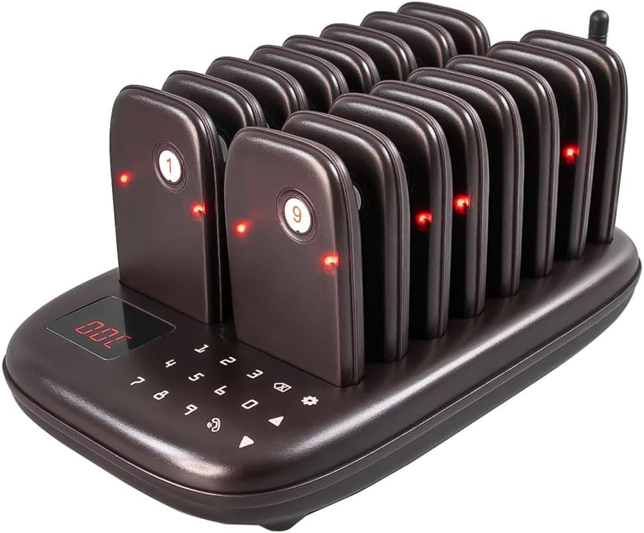 【أداء متميز】- يتكون نظام أجهزة الاستدعاء في المطاعم من جهاز إرسال لوحة مفاتيح لاسلكي مكون من 998 قناة و16 قطعة من أجهزة الاستدعاء اللطيفة. إنه يجعل من الممكن تجنب فوضى الموظفين والحفاظ على المسافة الاجتماعية وتحسين كفاءة العمل.
