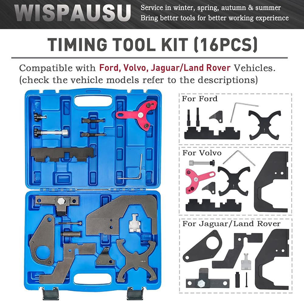 تطبيقات قوية - مجموعة أدوات قفل عمود الحدبات لإعداد توقيت المحرك المكونة من 16 قطعة متوافقة مع نماذج واسعة من سيارات فولفو وفورد وجاكوار/لاند روفر والمزيد. احصل على المزيد من الأدوات، ووفر المزيد من المال!