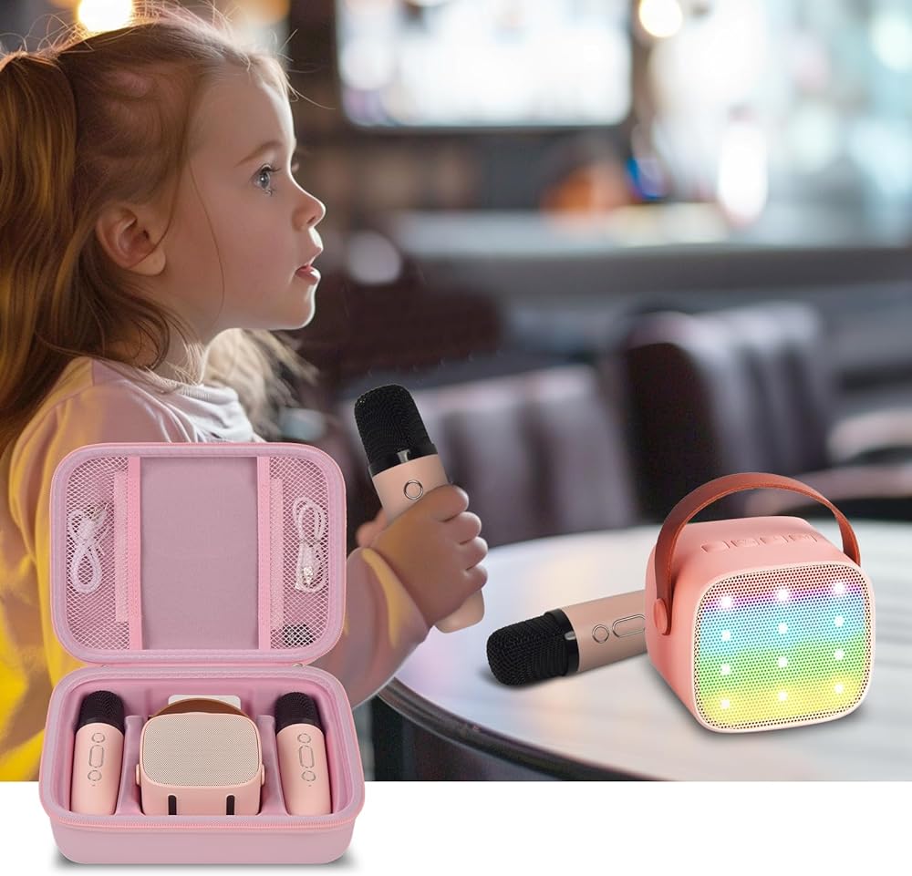 1. Storage Case for YLL/ for for VERKB /for MEGUO/for UMEIJA/for Darkant/for Kingci/for Snowall Kids Karaoke Machine Portable Bluetooth Speaker with Wireless Microphone, Christmas Kids Toys Gifts for Girls (Lightpink)