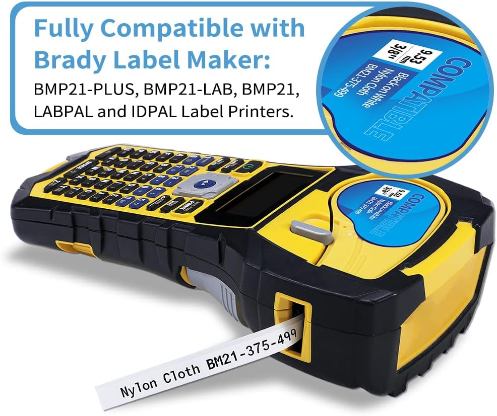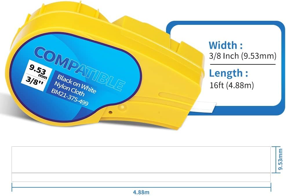 متوافق: غير صانعي القطع الأصلية، ولكنه بديل مثالي لأشرطة الملصقات المصنوعة من قماش النايلون M21-375-499 مقاس 3/8 بوصة، والتي تعمل مع طابعات الملصقات BMP21-PLUS وBMP21-LAB وBMP21 وLABPAL وIDPAL.