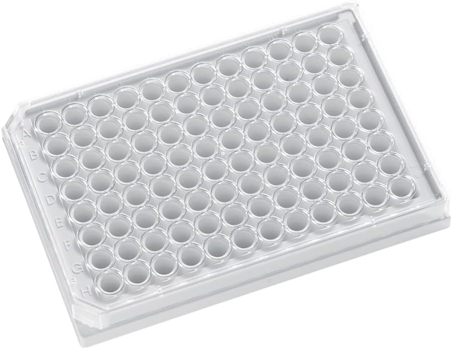 Krystal glass bottom plates are manufactured for whole-plate CCD imaging and laser detection applications, Krystal glass bottom plates consist of a polystyrene upper part and a clear borosilicate glass sheet fixed to the base with a proprietary adhesive. This process results in consistent flatness of the base and gives improved light transmission while maintaining a flat optical plane for growing cells. The nominal cut-off wavelength of 335nm allows most fluorescence assays to be excited or read through the glass bottom. All plates supplied Lidded.