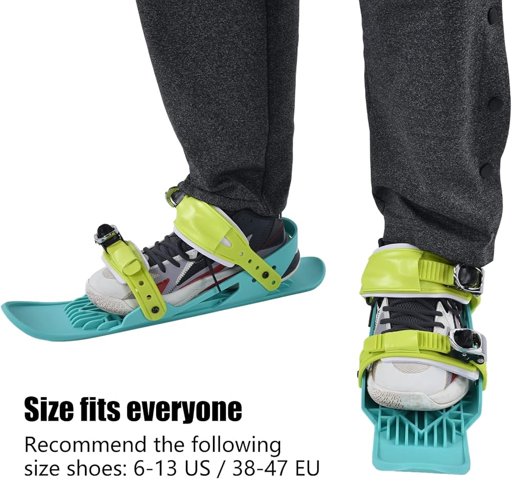 2. Adjustable Design: Ski skates are adjustable, allowing you to fix the skateboard shoes on any shoe. The size is suitable for everyone. We recommend shoes of the following sizes: 6‑13 US / 38‑47 EU.