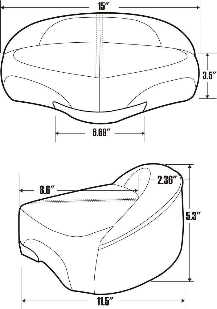 أبعاد مقعد القارب: الارتفاع 5.3 بوصة × العرض 15 بوصة × العمق 11 بوصة