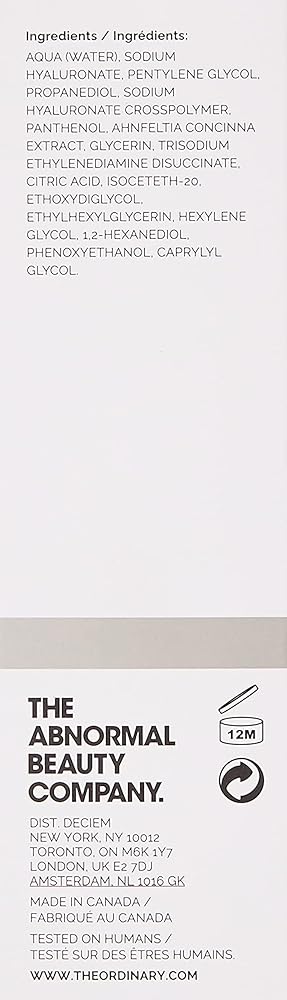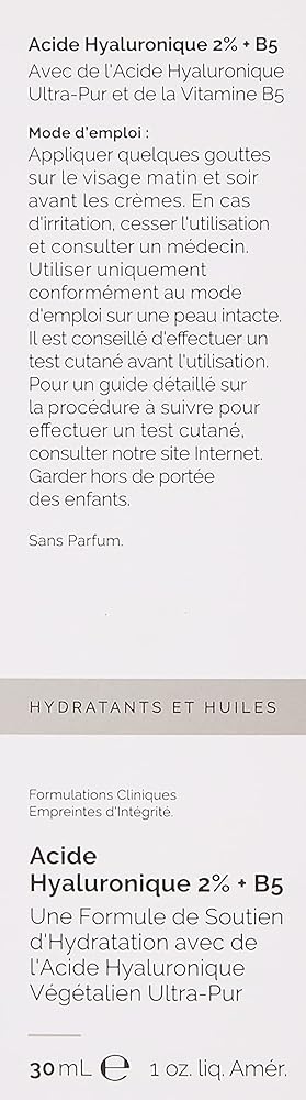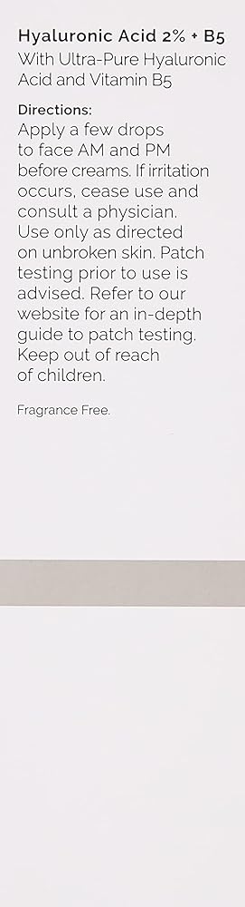 Hyaluronic Acid (HA) can attract up to 1,000 times its weight in water. The molecular size of HA determines its depth of delivery in the skin. This formulation combines low-, medium- and high-molecular weight HA, as well as a next-generation HA crosspolymer at a combined concentration of 2% for multi-depth hydration in a water-based formula. This system is supported with the addition of Vitamin B5 which also enhances surface hydration. This product has NO safety seal.