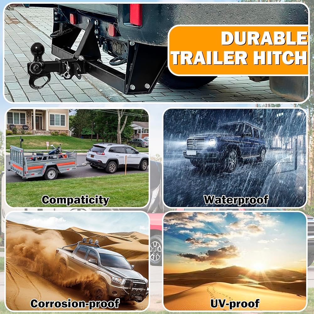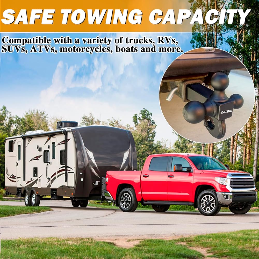 • 🚙【ملاءمة عالمية وسهلة التركيب】تناسب وصلة الكرة الثلاثية أجهزة الاستقبال مقاس 2 بوصة وتتوافق مع مجموعة متنوعة من الشاحنات ومركبات RV وسيارات الدفع الرباعي ومركبات ATV والدراجات النارية والقوارب والمزيد. الإضافة المثالية لأدوات القطر الخاصة بك، سواء للعمل أو اللعب. ⚠ إن استبدال كرة الربط السريعة والآمنة يجعل من السهل التبديل بين المقطورات أو إعدادات القطر دون الحاجة إلى أدوات إضافية.