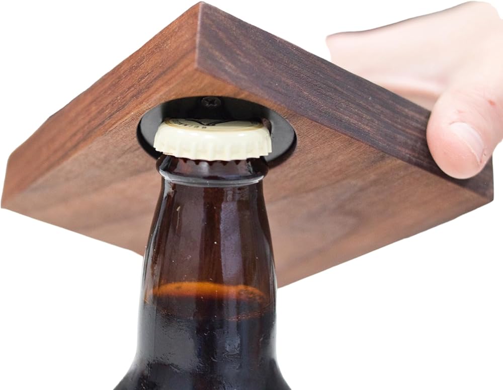 Introducing our walnut coasters with recessed bottle opener - the perfect combination of style and functionality. These coasters are made from high-quality maple wood and feature a sleek and modern design that will elevate any setting. The recessed bottle opener is built into the coaster, making it easy to open bottles with one hand while keeping your drinks safe and secure. The coasters are also reversible, allowing you to choose between two different designs. Whether you're entertaining guests at home or using them in your office, these maple coasters with recessed bottle opener are a must-have accessory. Each coaster is approximately 4" x 4" x 5/8".