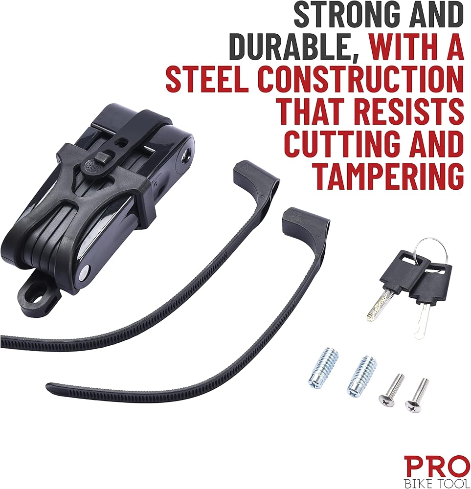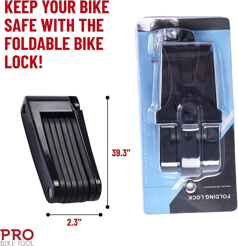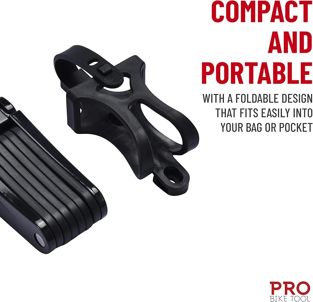 قفل عالي الأمان: يوفر قفل الدراجة خفيف الوزن القابل للطي (39.3 × 2.36 × 2.36 بوصة) حماية قوية وعالية الأمان لدراجتك دون الحاجة إلى رمز أو سلسلة.