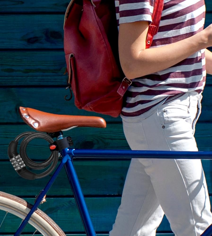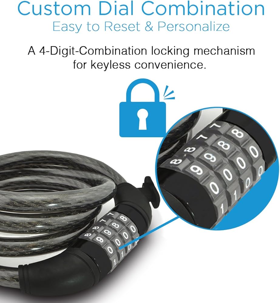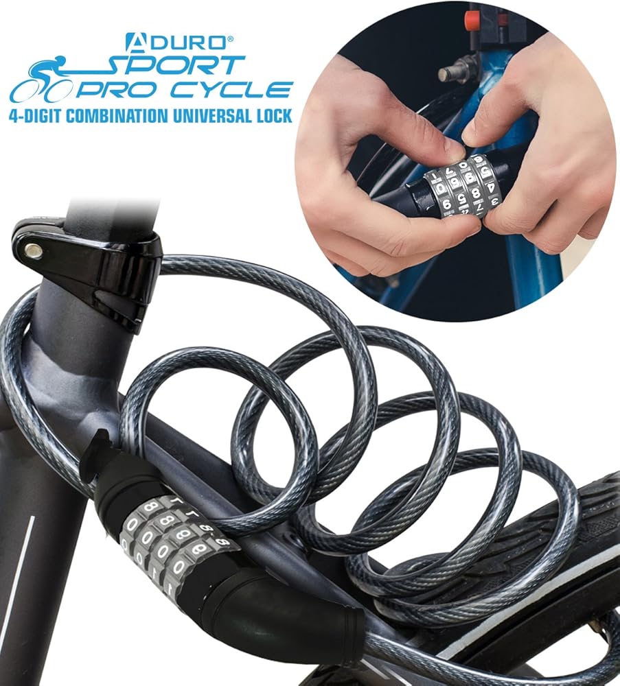 تصميم قفل رئيسي - قفل كابل رئيسي للدراجة Aduro مع قفل رئيسي مكون من 4 أرقام قابل لإعادة الضبط، مما يتيح لك ضبط مجموعة الأرقام الشخصية الخاصة بك